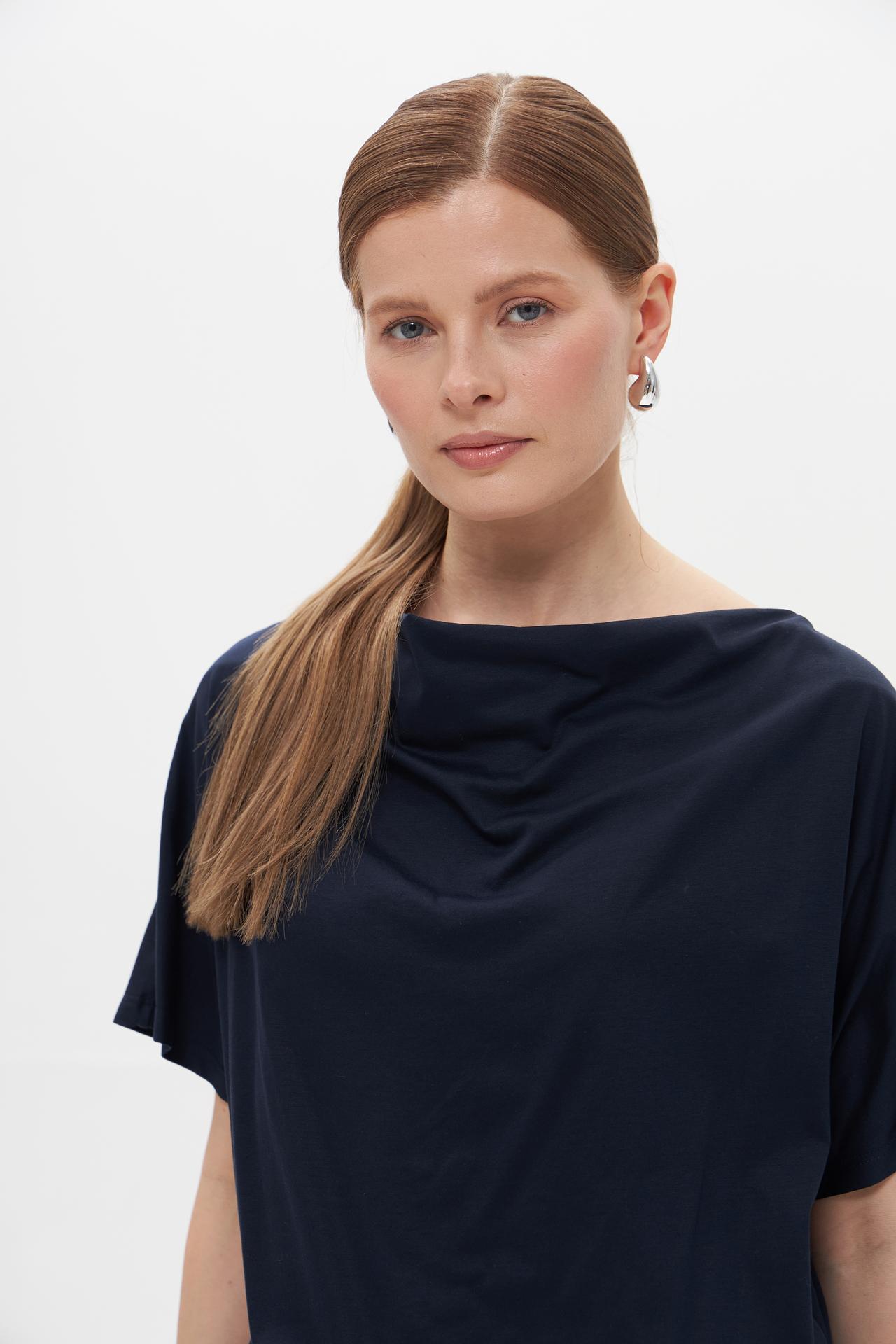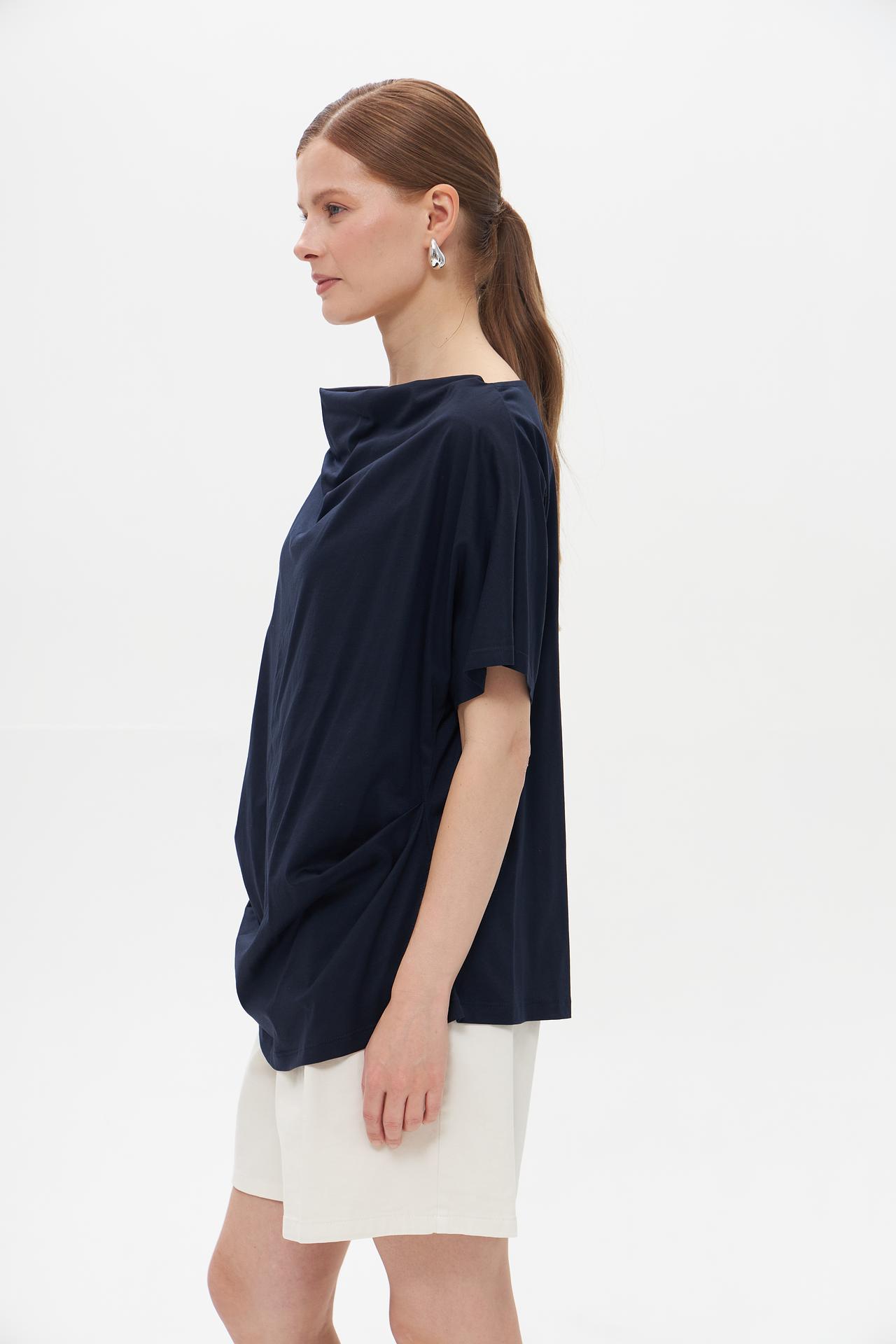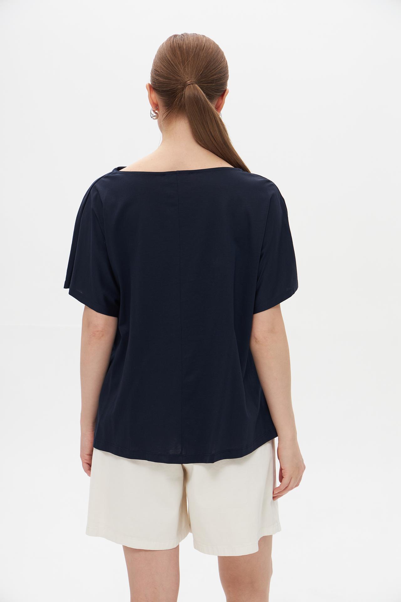 - Универсальность. Базовая тёмно-синяя футболка легко интегрируется в любой гардероб. Она подходит для повседневной носки, отдыха, создания элегантных многослойных комплектов или делового образа в стиле smart casual.