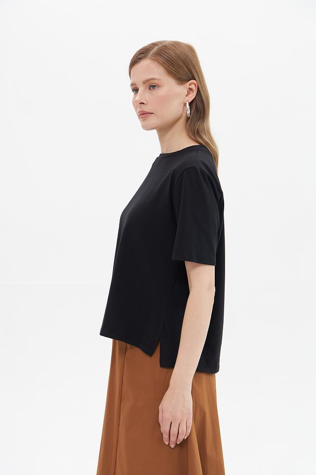 Чёрная футболка Croche прямого кроя из хлопка с эластаном. Модель с короткими рукавами и небольшим разрезом по бокам. Состав: 95% хлопок, 5% эластан. Состав: хлопок 95%, эластан 5%