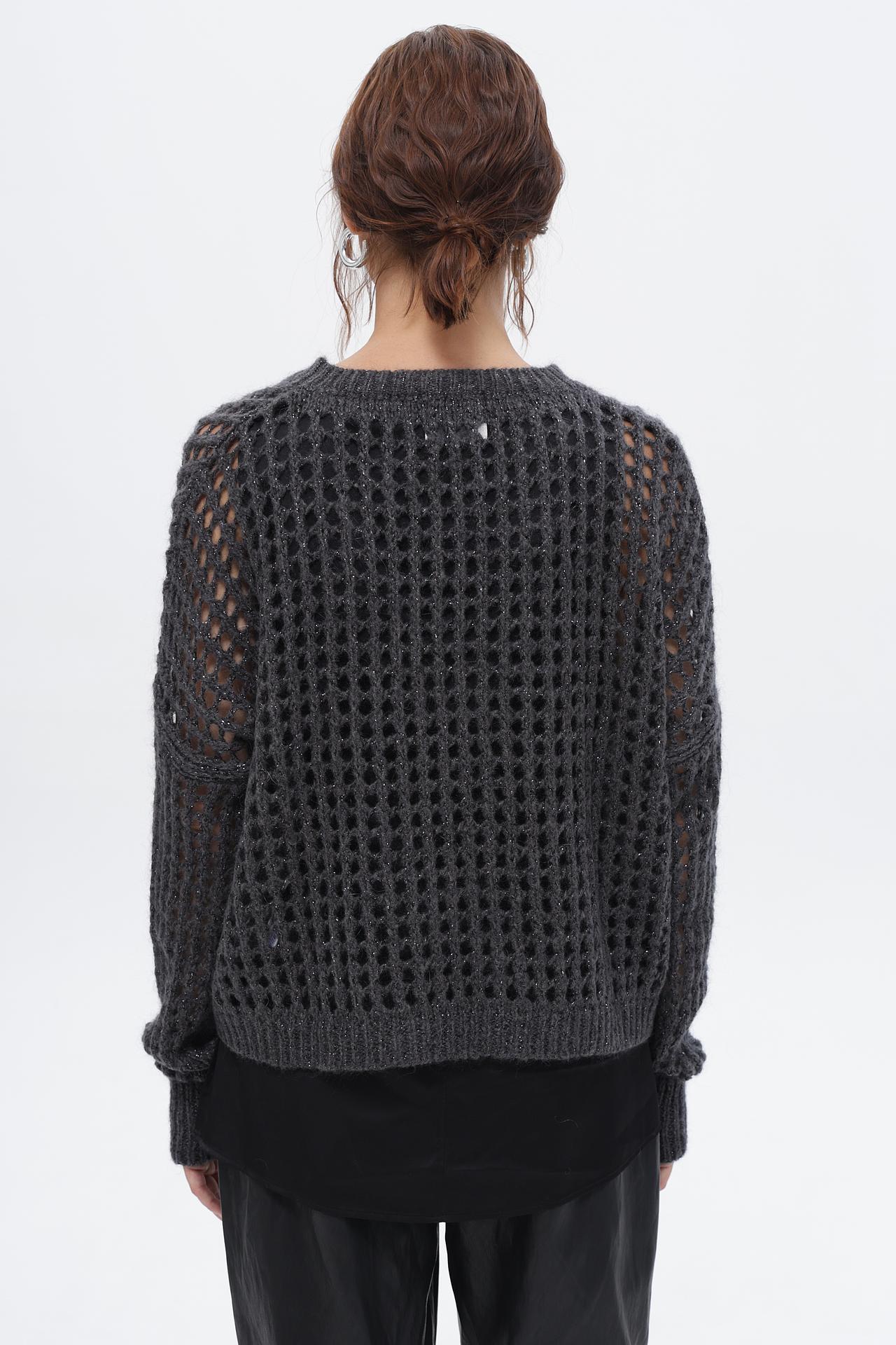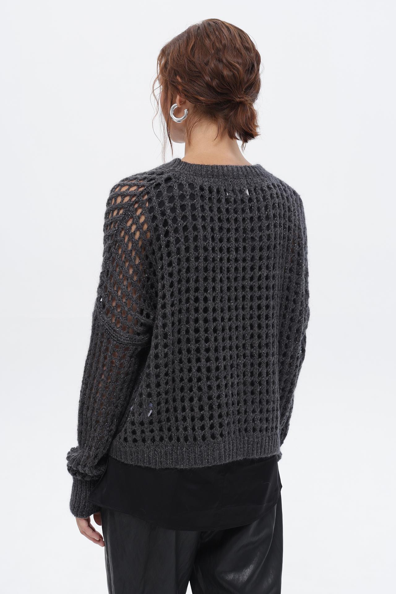Стильный пуловер Croche из смесовой пряжи станет идеальным дополнением к вашему повседневному гардеробу. Оригинальная ажурная вязка и легкий блеск нитей придают изделию особую элегантность.
