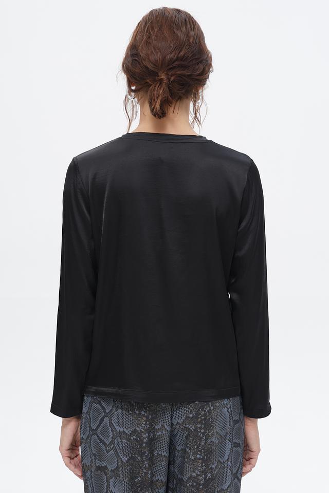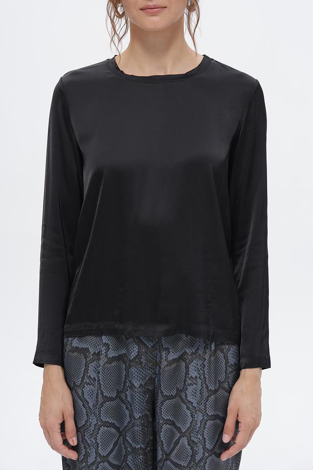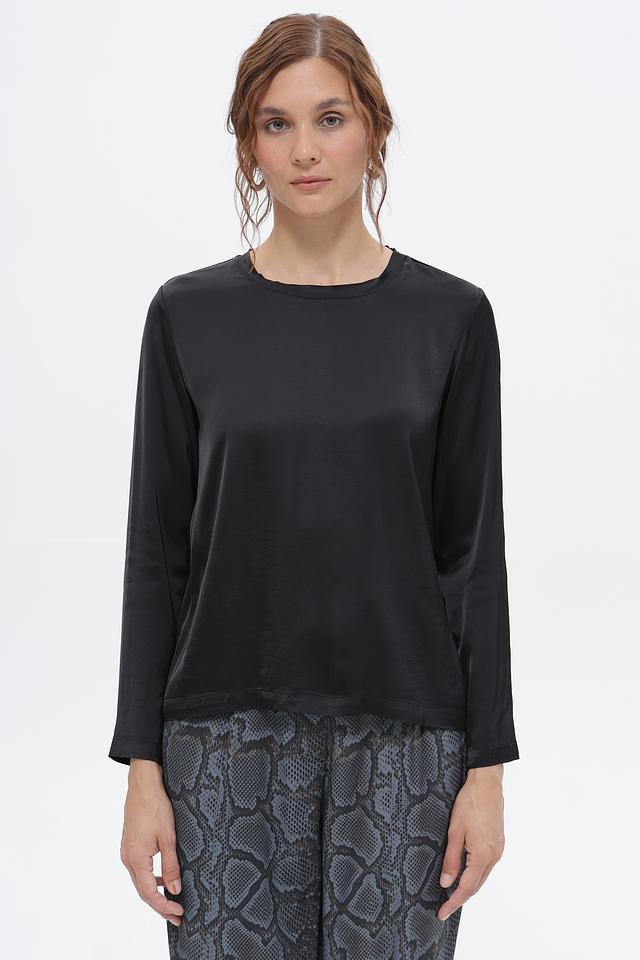 Черная блуза Croche с длинным рукавом, выполненная из мягкой вискозы с добавлением эластана. Классический крой и лаконичный дизайн делают эту блузу универсальным элементом гардероба. Состав: вискоза 97%, эластан 3%