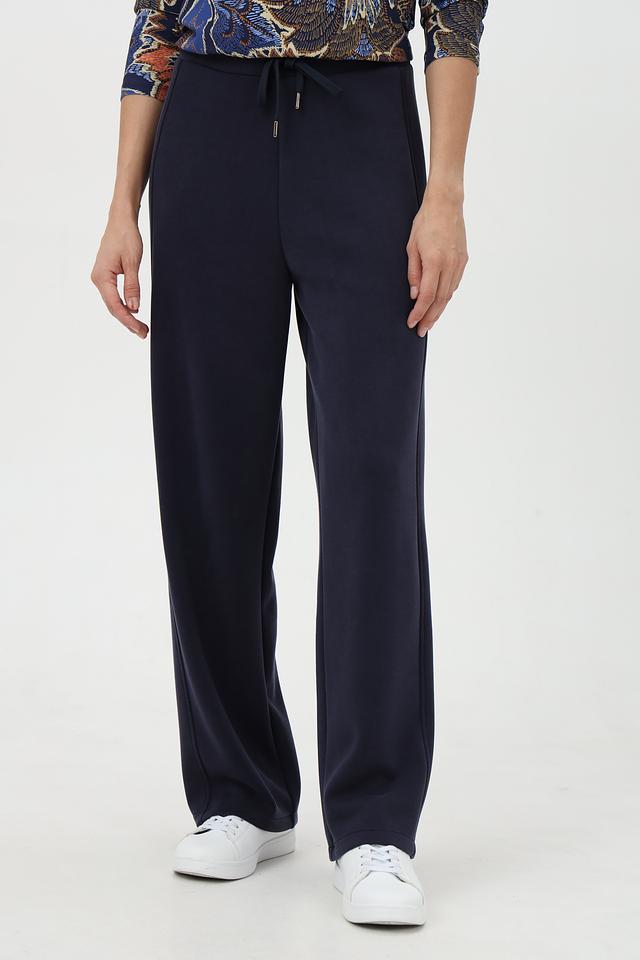 Брюки отличаются свободным кроем и широкими штанинами, обеспечивающими максимальный комфорт в носке. Эластичный пояс дополнен шнурком, что позволяет регулировать посадку по фигуре.