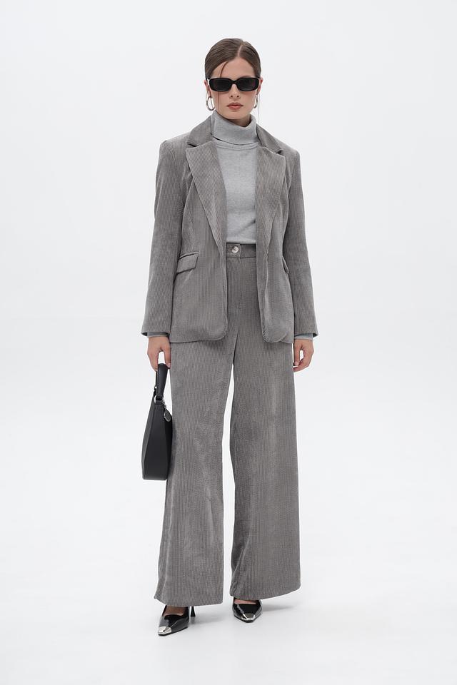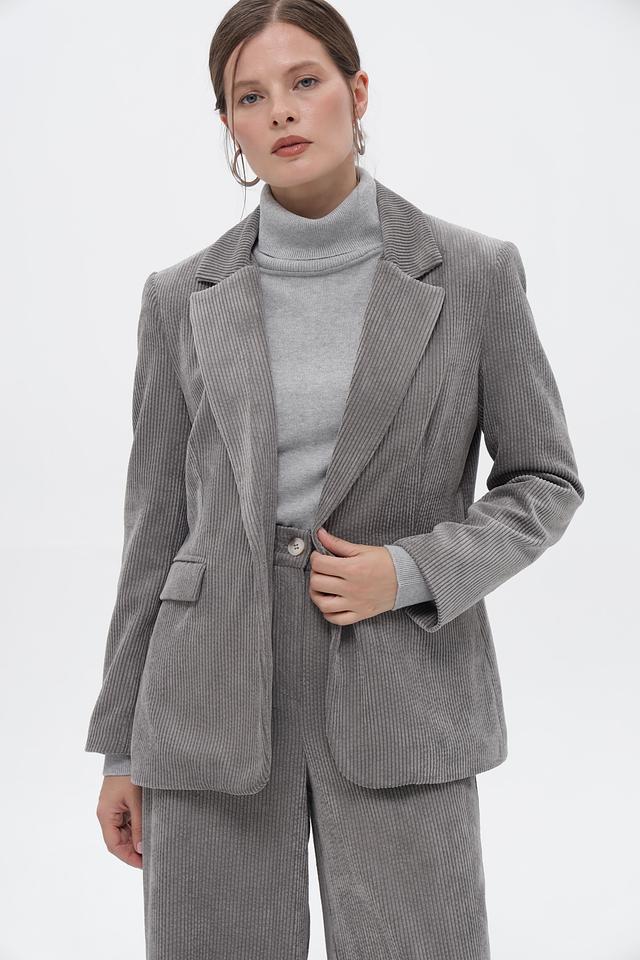 Серый жакет Croche – это универсальный предмет женского гардероба, выполненный из вельвета в полоску. Классический крой и приталенный силуэт подчеркнут достоинства фигуры, а однобортная застежка с пуговицами обеспечит удобство носки.