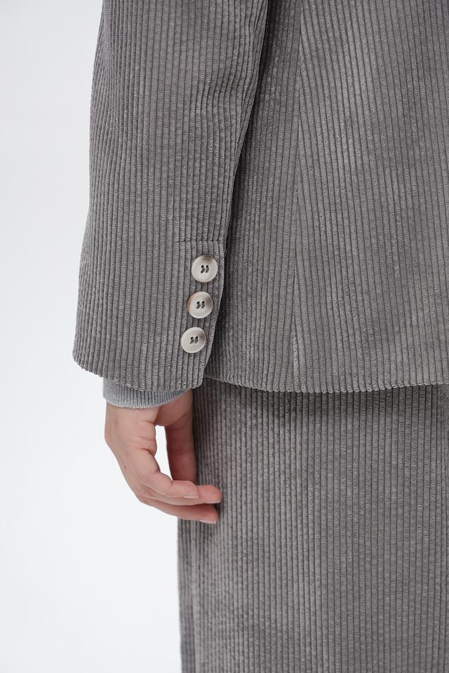 Серый жакет Croche из вельвета в полоску — стильное решение для создания элегантного образа. Изготовлен из полиэстера с добавлением полиамида и эластана, обеспечивающих комфорт и свободу движений. Состав: полиэстер 88%, полиамид 11%, эластан 1%