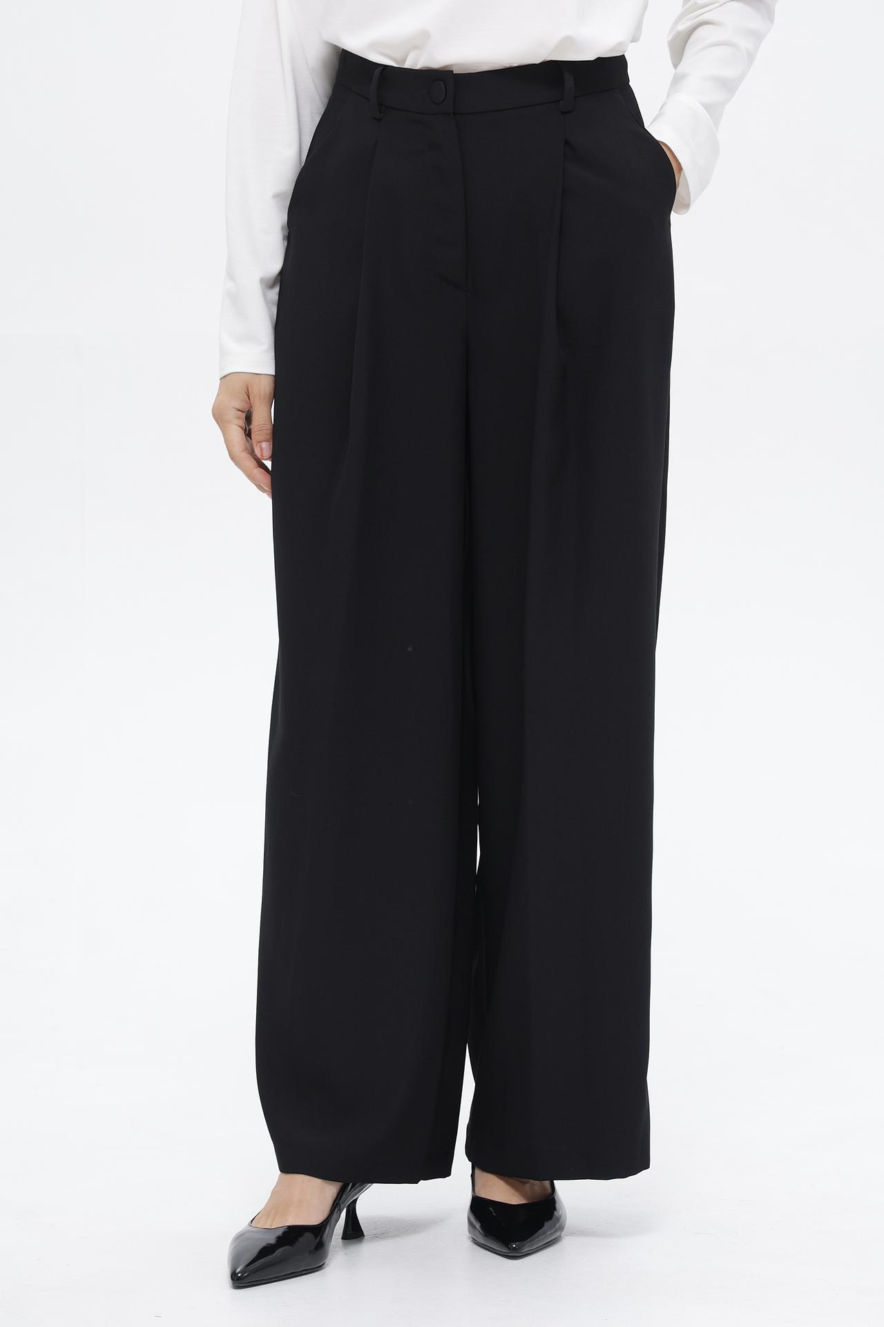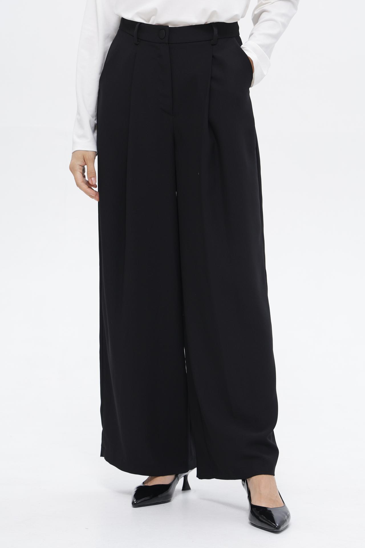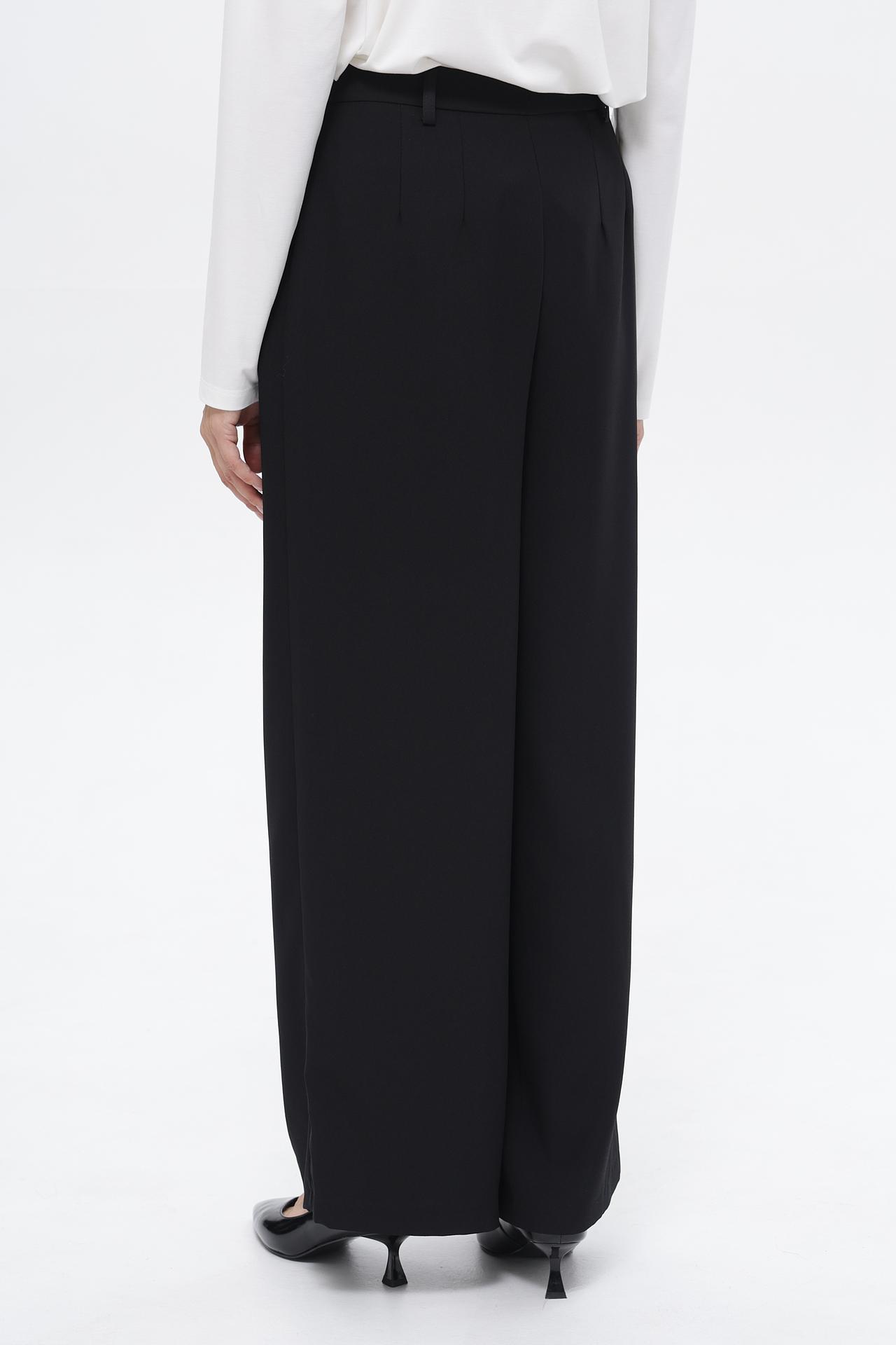 - Крой: Широкие брюки со свободной посадкой и плиссировкой спереди создают эффектный силуэт и обеспечивают максимальный комфорт.