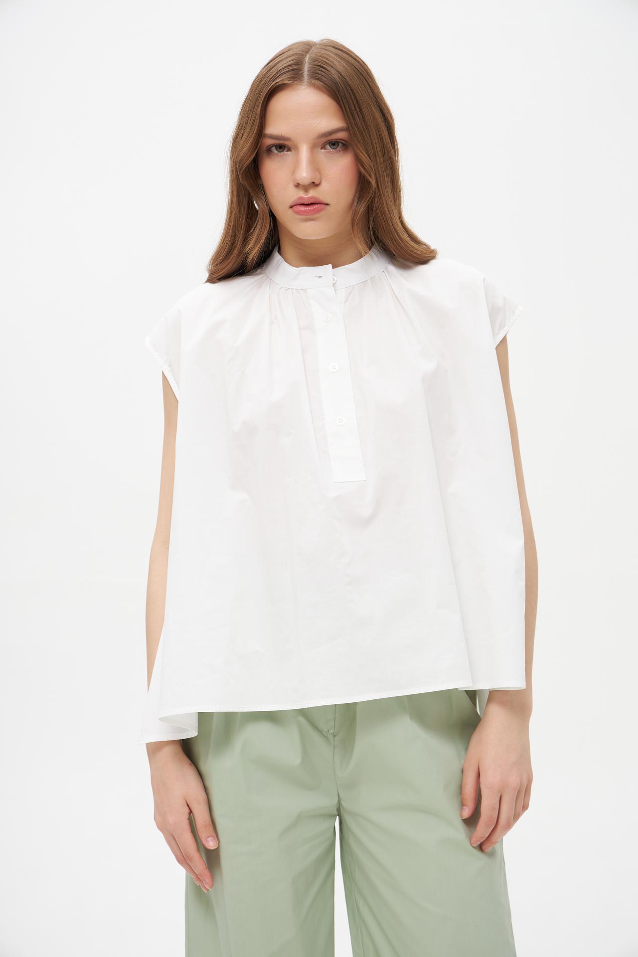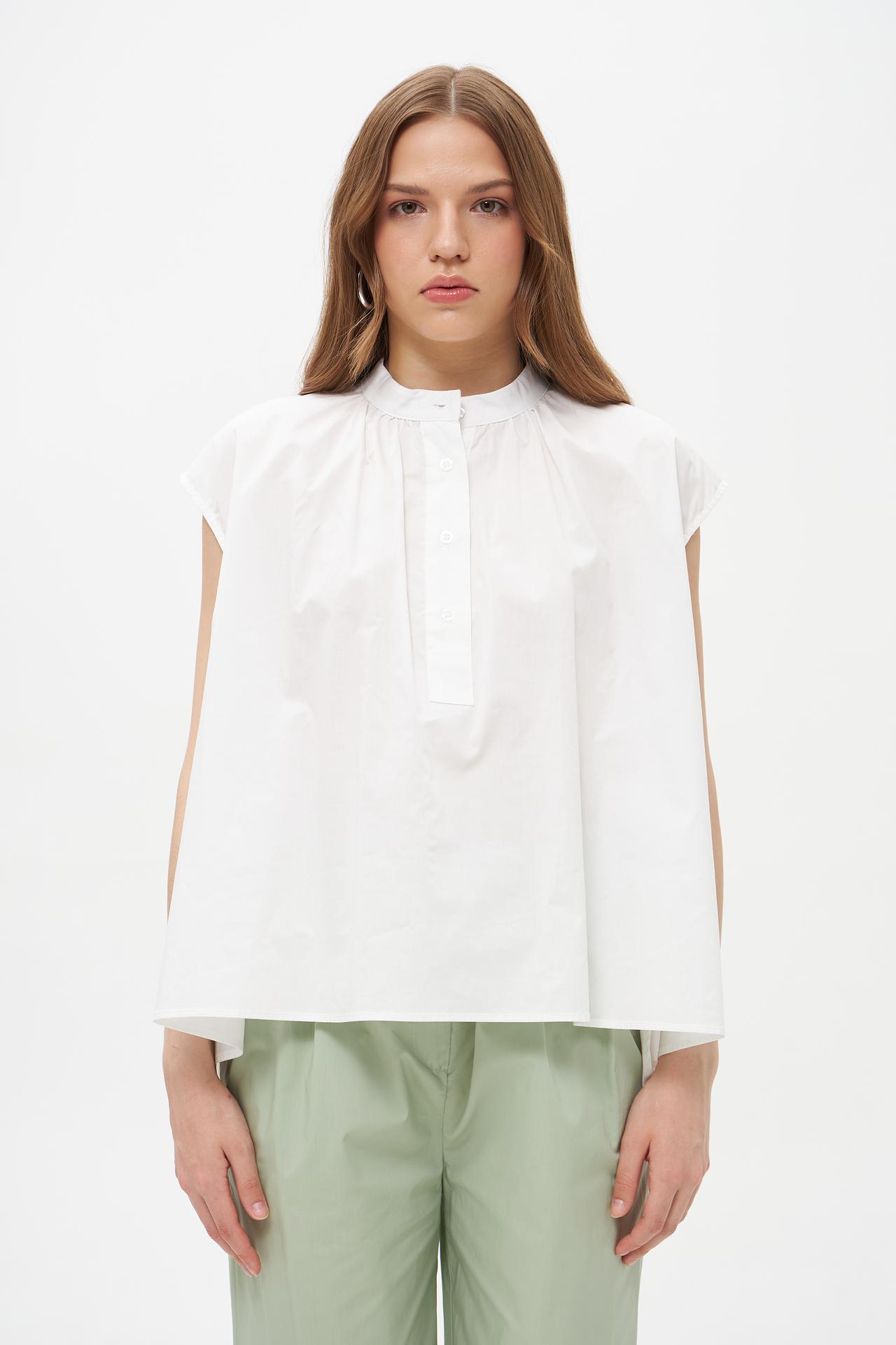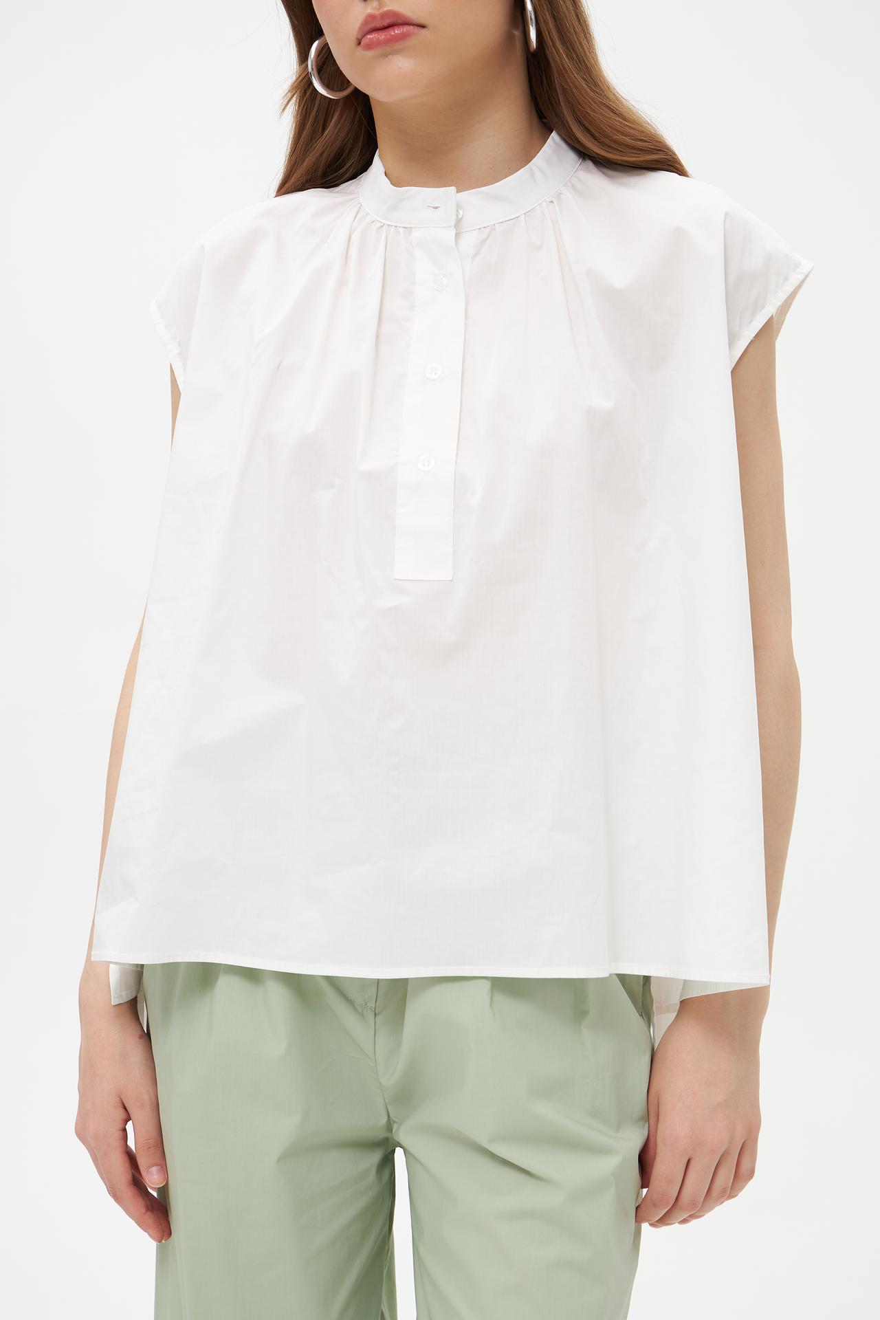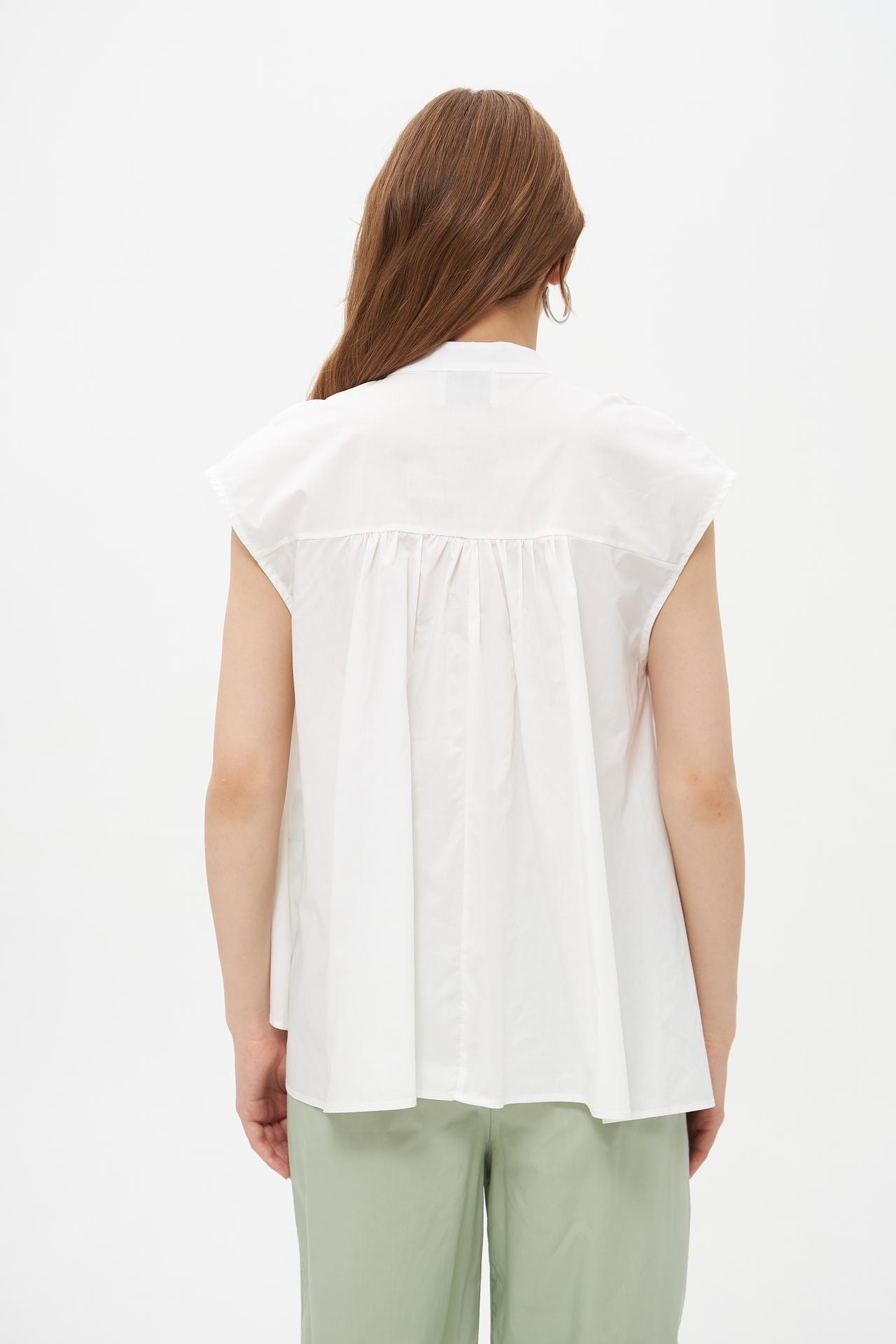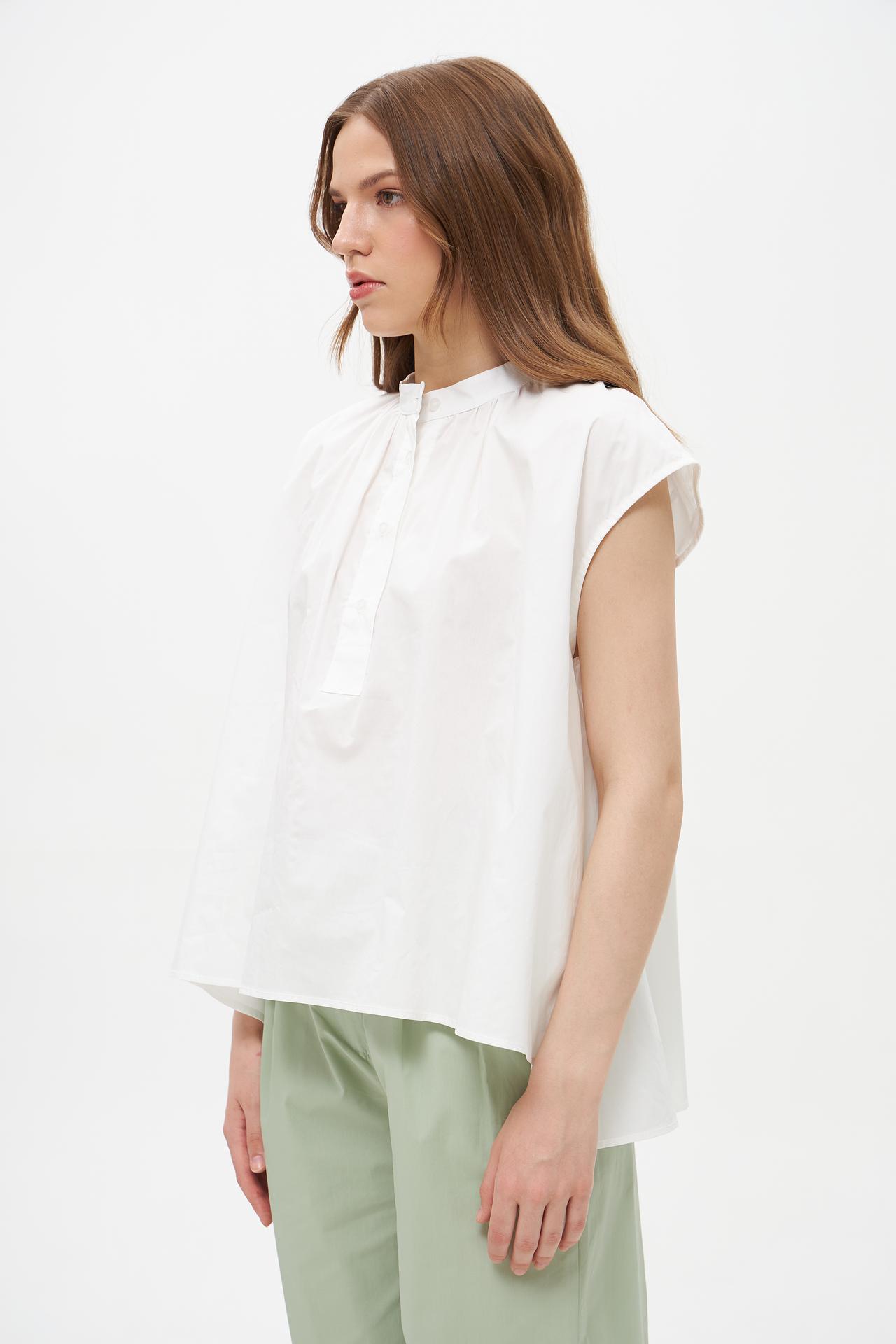 Хлопковая ткань приятна к телу, обеспечивает комфорт и свободу движений. Благодаря натуральному составу блуза отлично пропускает воздух и впитывает влагу. Крой блузы выгодно подчеркивает фигуру и скрывает недостатки.