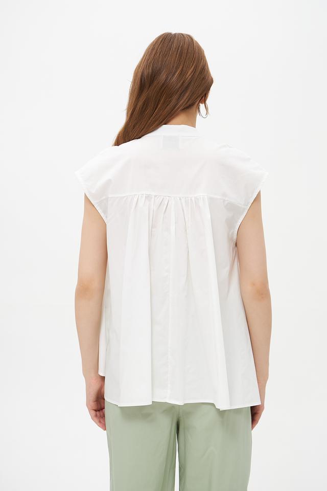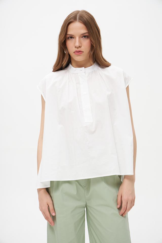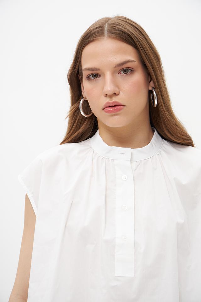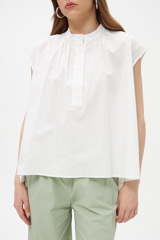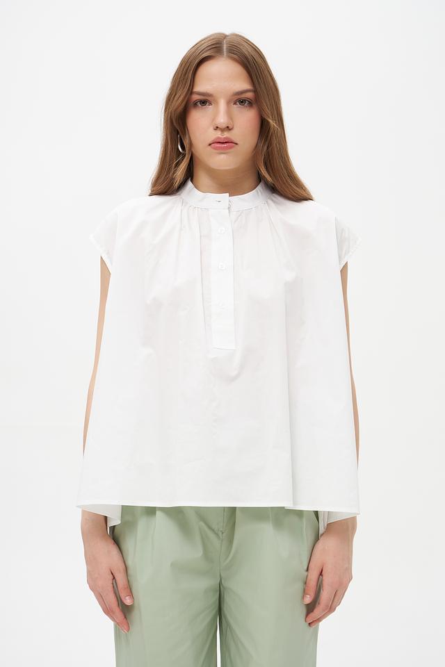 Белая блузка Croche из 100% хлопка с небольшими воланами на плечах. Объемный свободный крой и застежка на пуговицы создают комфортный и стильный образ. Идеальна для создания повседневных и деловых образов. Состав: хлопок 100%