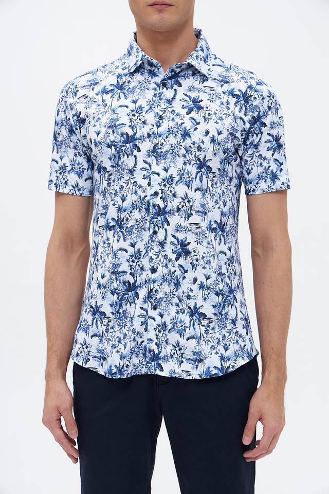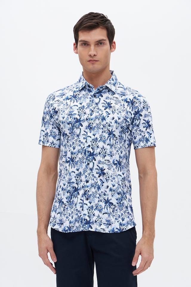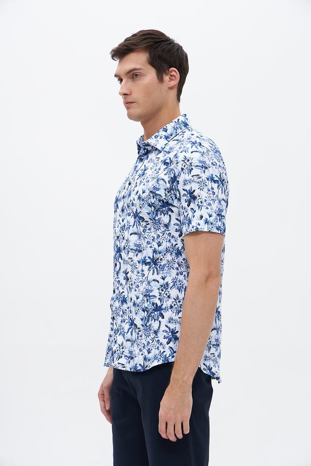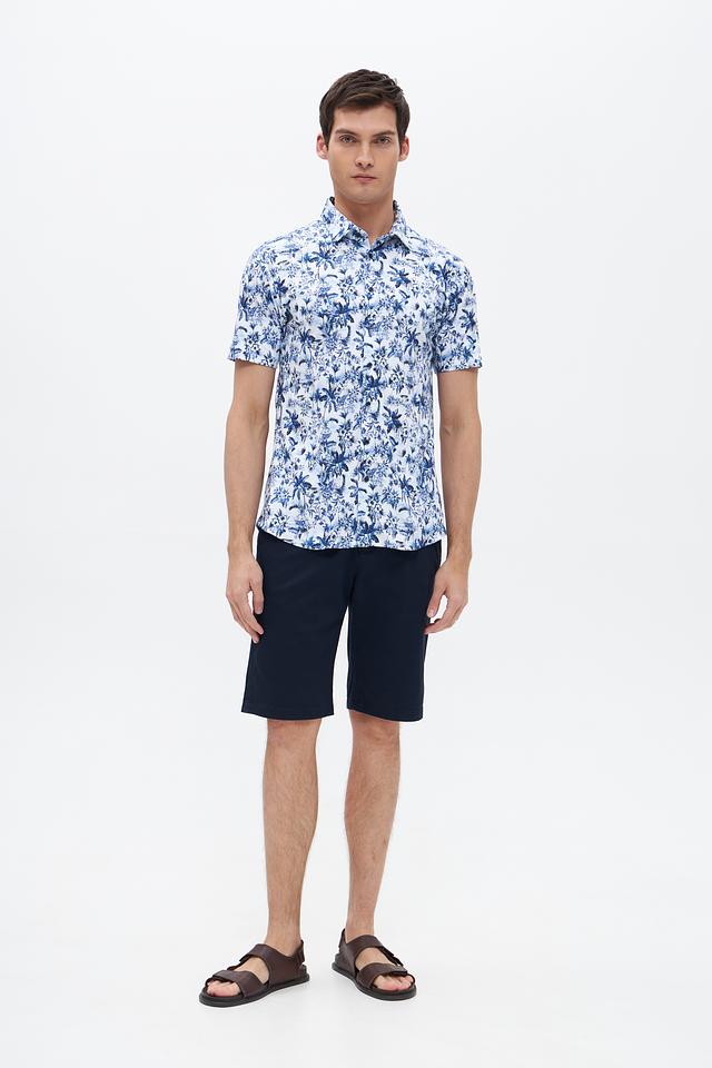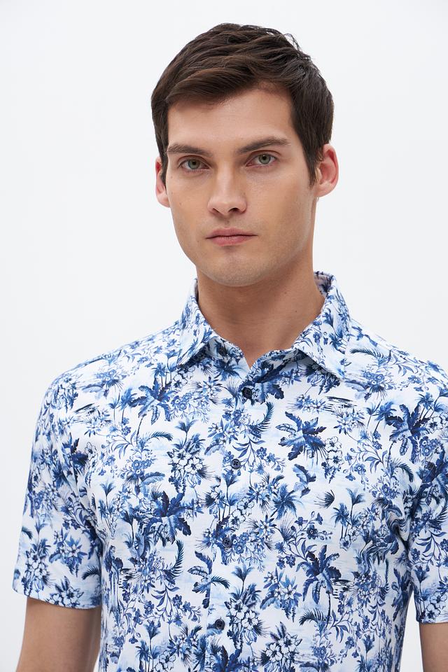 Мужская рубашка Desoto короткий рукав, голубого цвета, с ярким цветочным принтом. Изготовлена из 100% хлопка, обеспечивающего комфорт и воздухопроницаемость. Идеальный выбор для создания стильного летнего образа. Состав: хлопок 100%