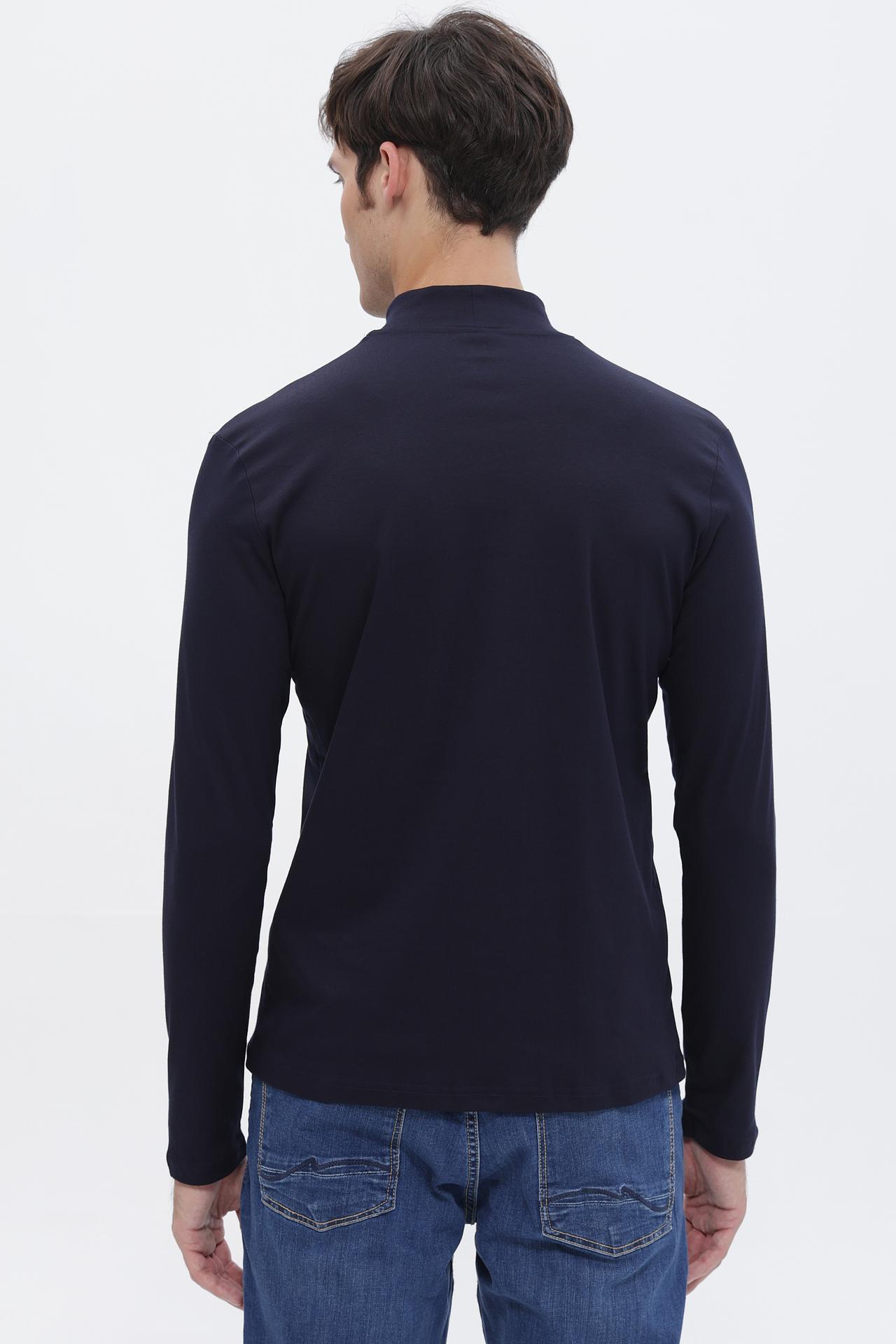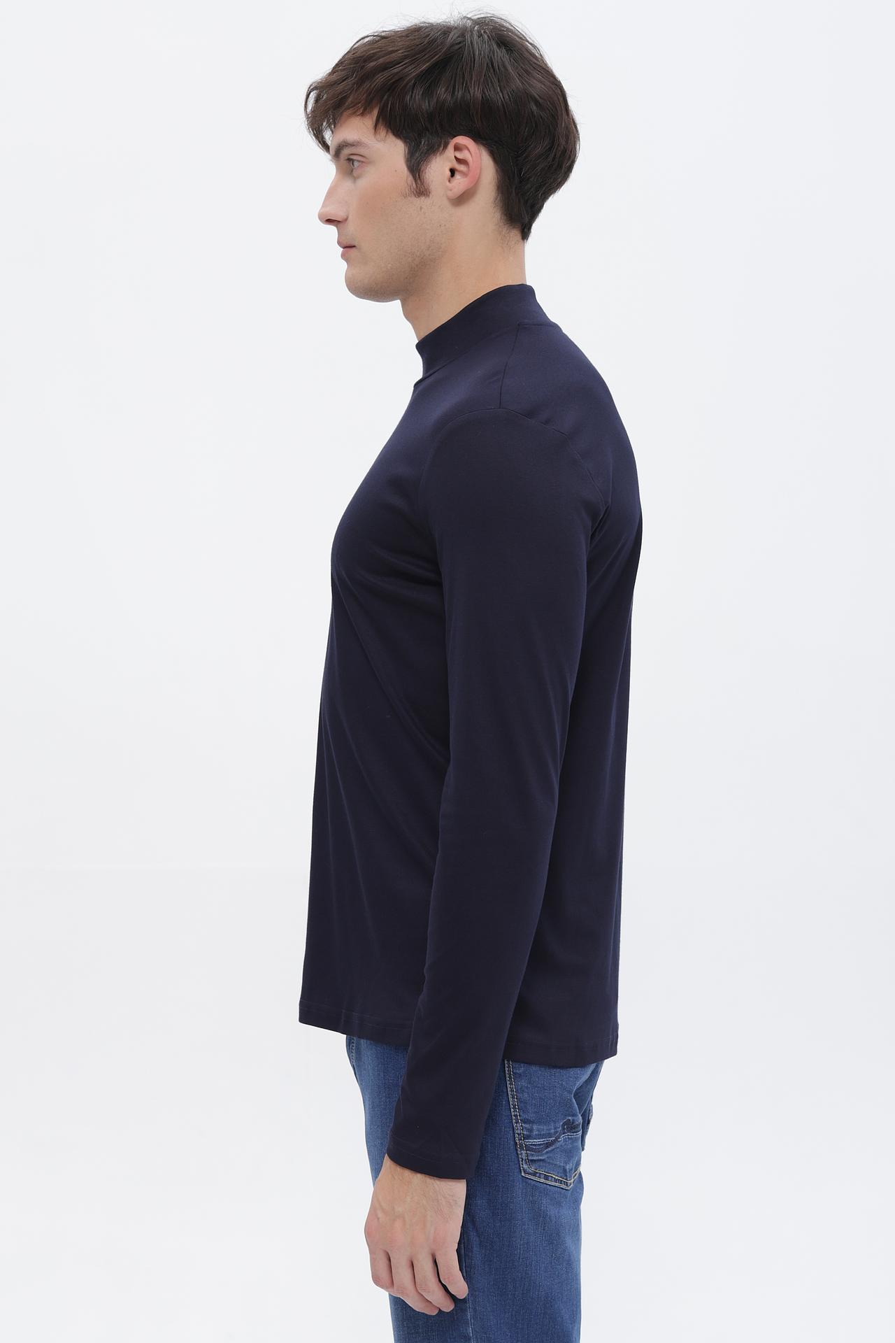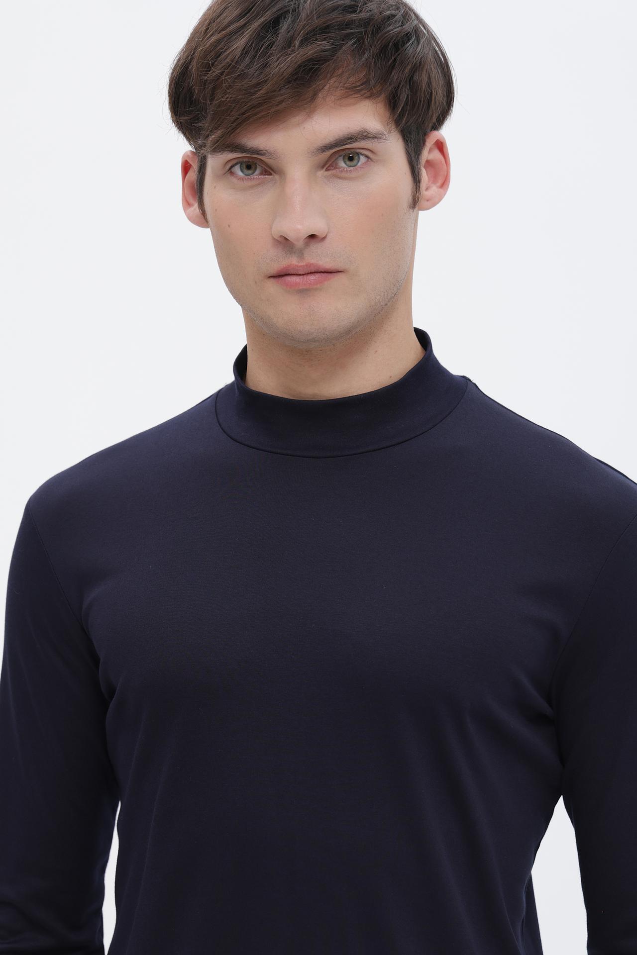 Футболка Desoto — это классическая модель с высоким воротом, идеально подходящая для создания многослойных образов или как самостоятельный элемент гардероба. Глубокий синий цвет делает эту футболку универсальной и легко сочетаемой с другими вещами.