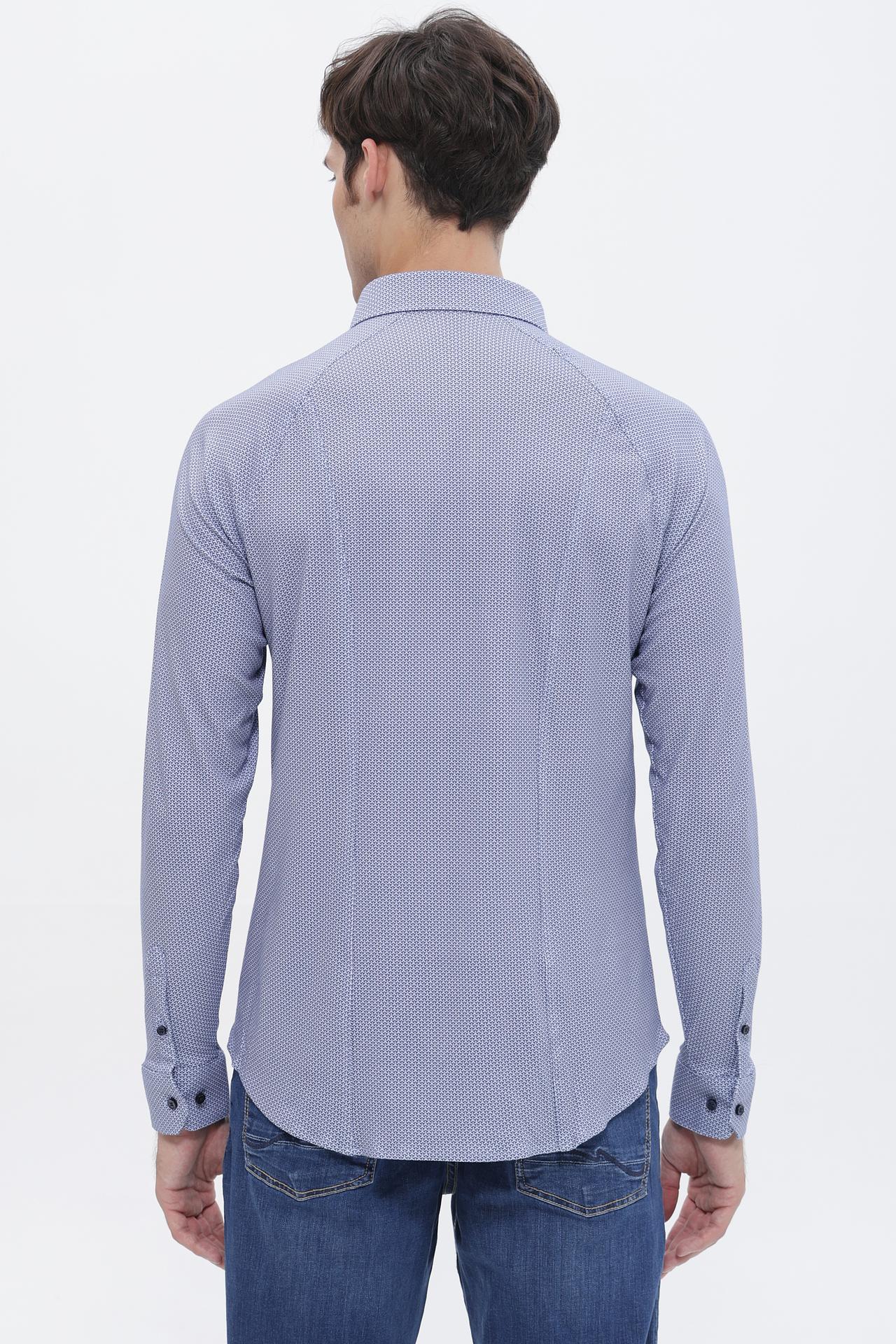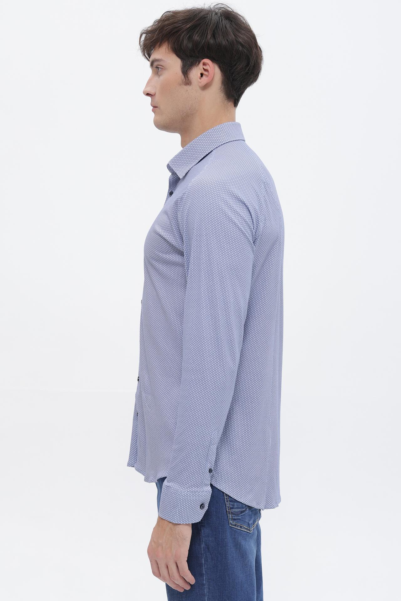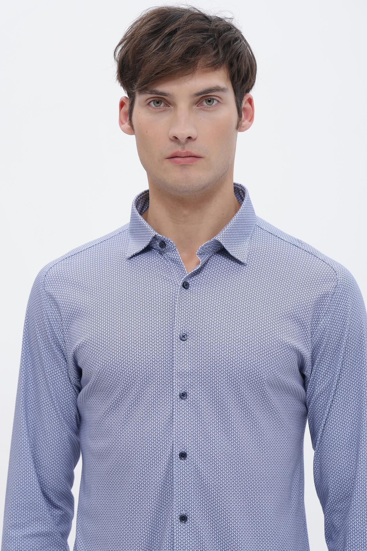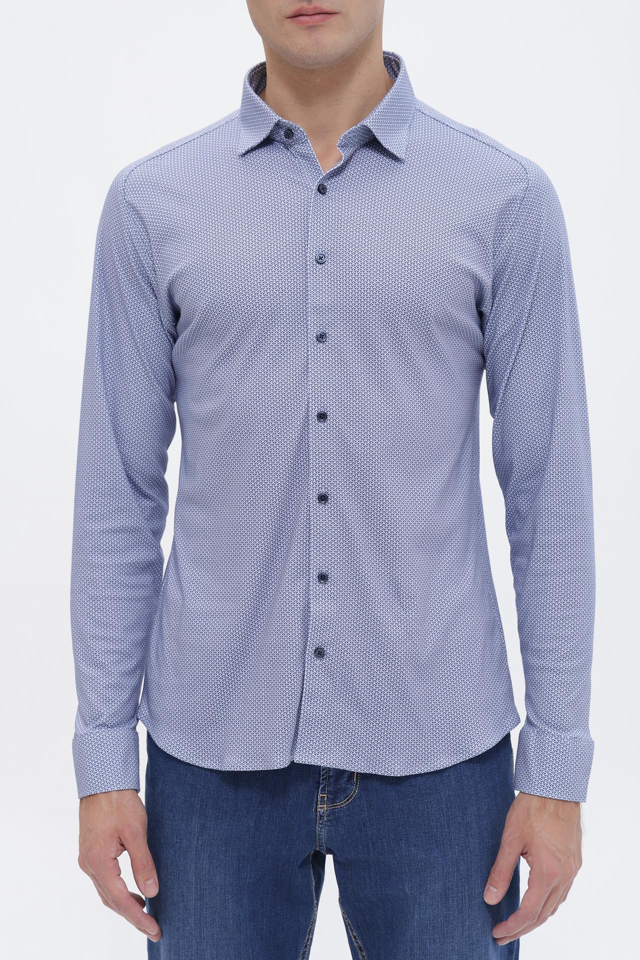 Элегантная рубашка от Desoto с длинным рукавом станет универсальным дополнением вашего гардероба. Модель выполнена в приглушенном синем цвете с мелким геометрическим принтом, что придает ей сдержанный и стильный вид. Классический воротник и застежка на пуговицы обеспечивают аккуратное прилегание и комфорт в течение всего дня.