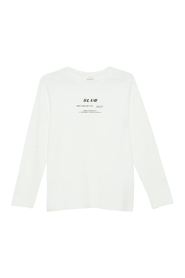 Эта футболка отлично подойдет как для школы, так и для прогулок с друзьями. Универсальный белый цвет и лаконичный принт с надписью "SLUR" добавляют изюминку, подчеркивая индивидуальность ребенка. Лонгслив легко сочетается с различными элементами детской одежды, создавая множество стильных образов.