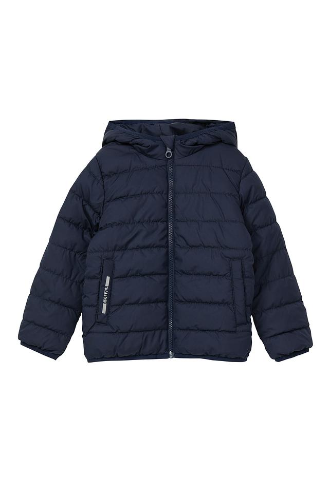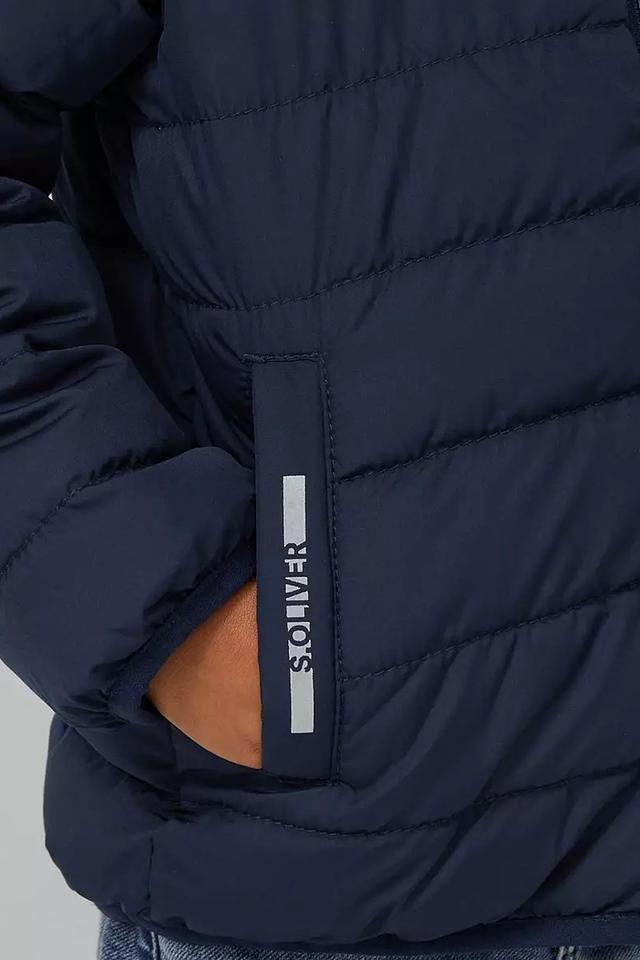 Синяя стеганая куртка s.Oliver для мальчиков, изготовленная из 100% полиэстера. Удобная и практичная модель с капюшоном для защиты от непогоды. Состав: полиэстер 100%