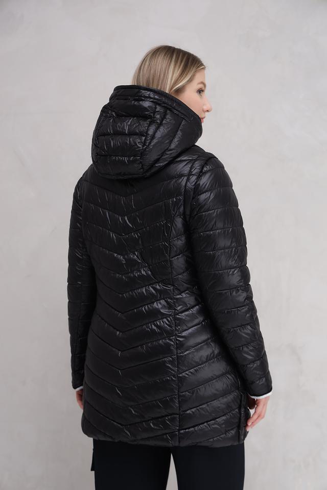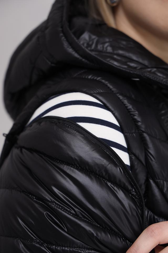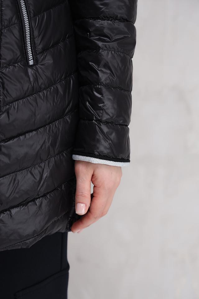 Куртка имеет стеганую текстуру, которая придает ей современный вид. Капюшон обеспечивает дополнительную защиту от непогоды, а молния позволяет быстро и удобно застегнуть куртку.