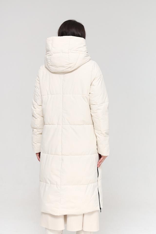 Модель отличается удобным кроем, не сковывающим движения. Пальто застегивается на молнию, имеет высокий воротник-стойку и капюшон, защищающие от ветра и холода. Боковые карманы на молнии позволяют безопасно хранить необходимые вещи.