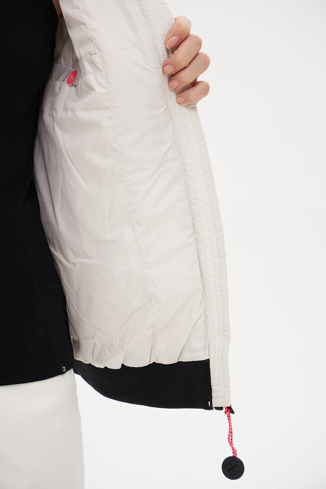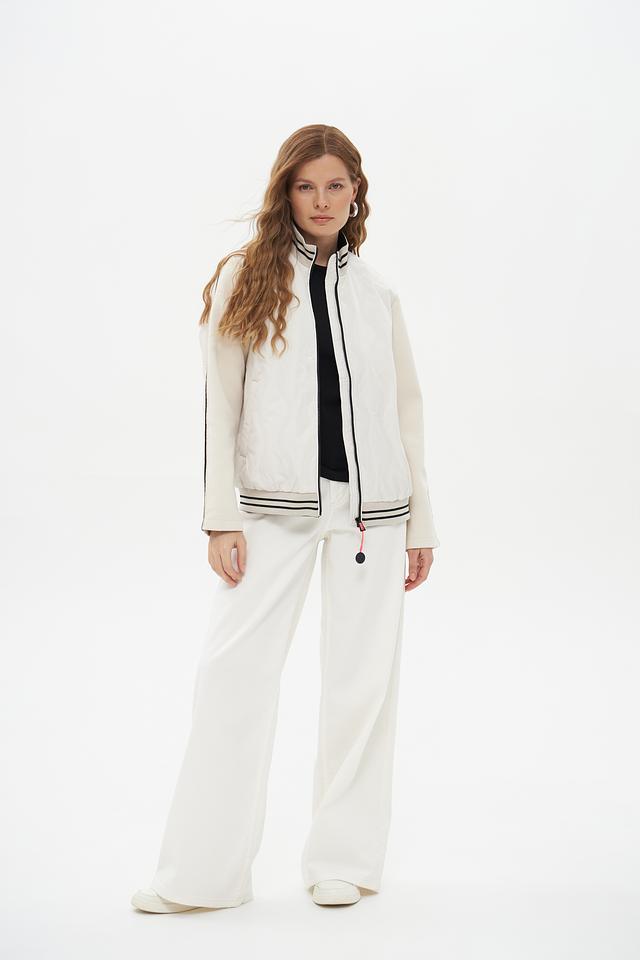 Эта куртка от бренда District станет отличным дополнением к вашему гардеробу. Выполнена в белом цвете с контрастными чёрными полосками на рукавах и по низу изделия, что придает ей спортивный и динамичный вид.