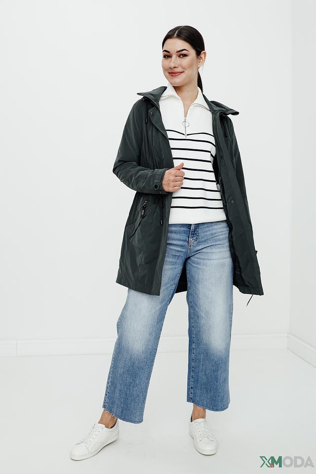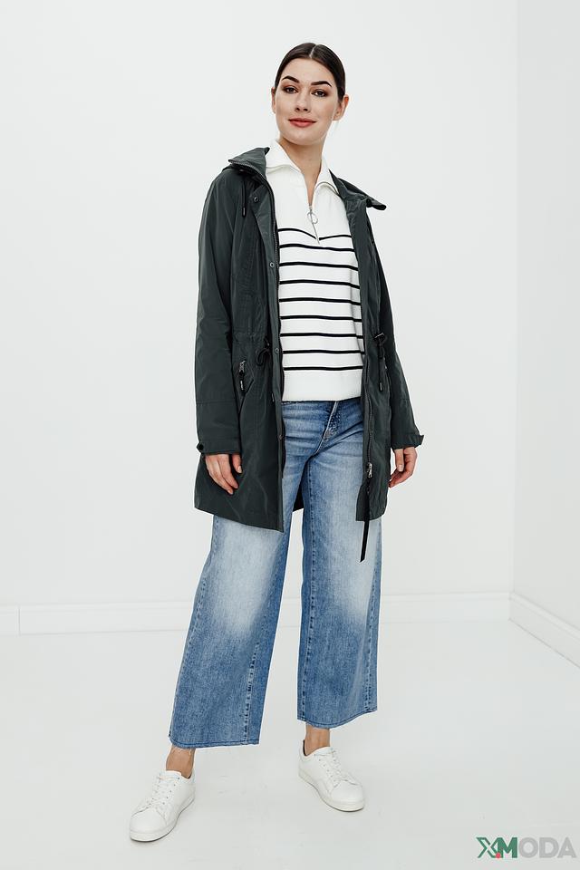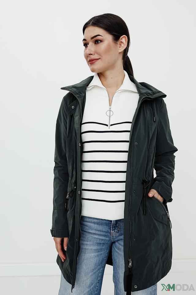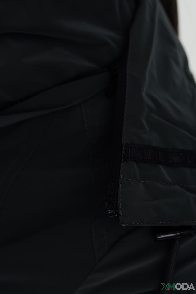 Куртка имеет удобный капюшон, который защитит от ветра и дождя. Застежка-молния обеспечивает надежную фиксацию, а регулируемые шнурки на талии позволяют создать силуэт по фигуре.