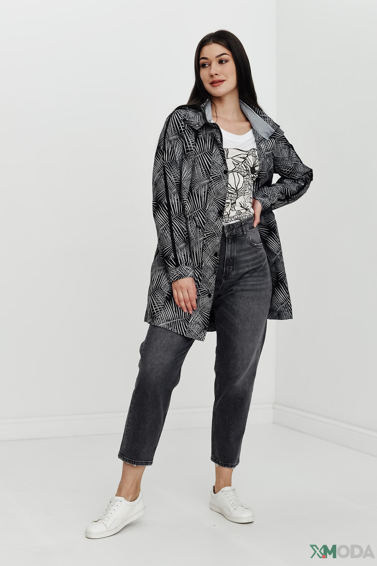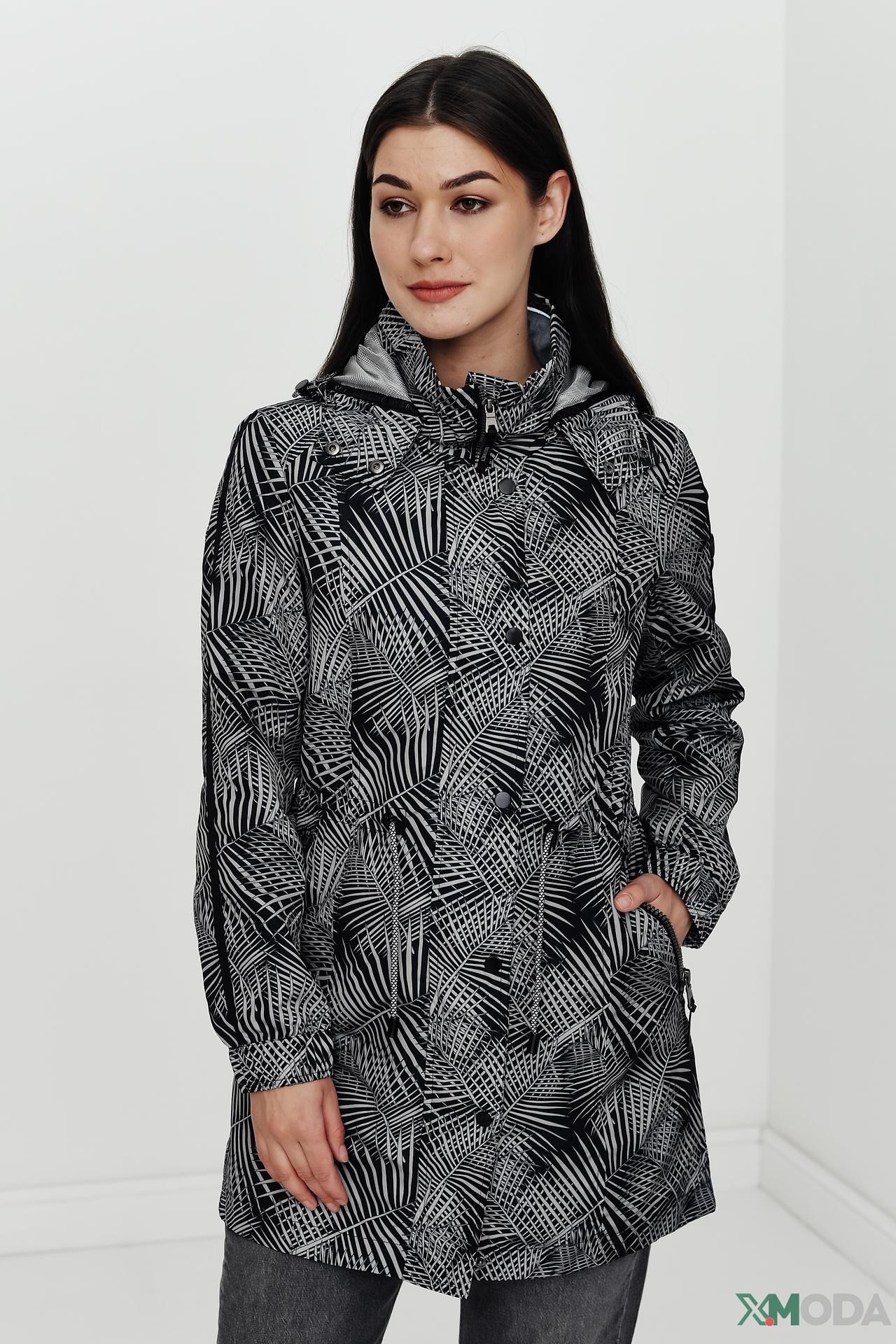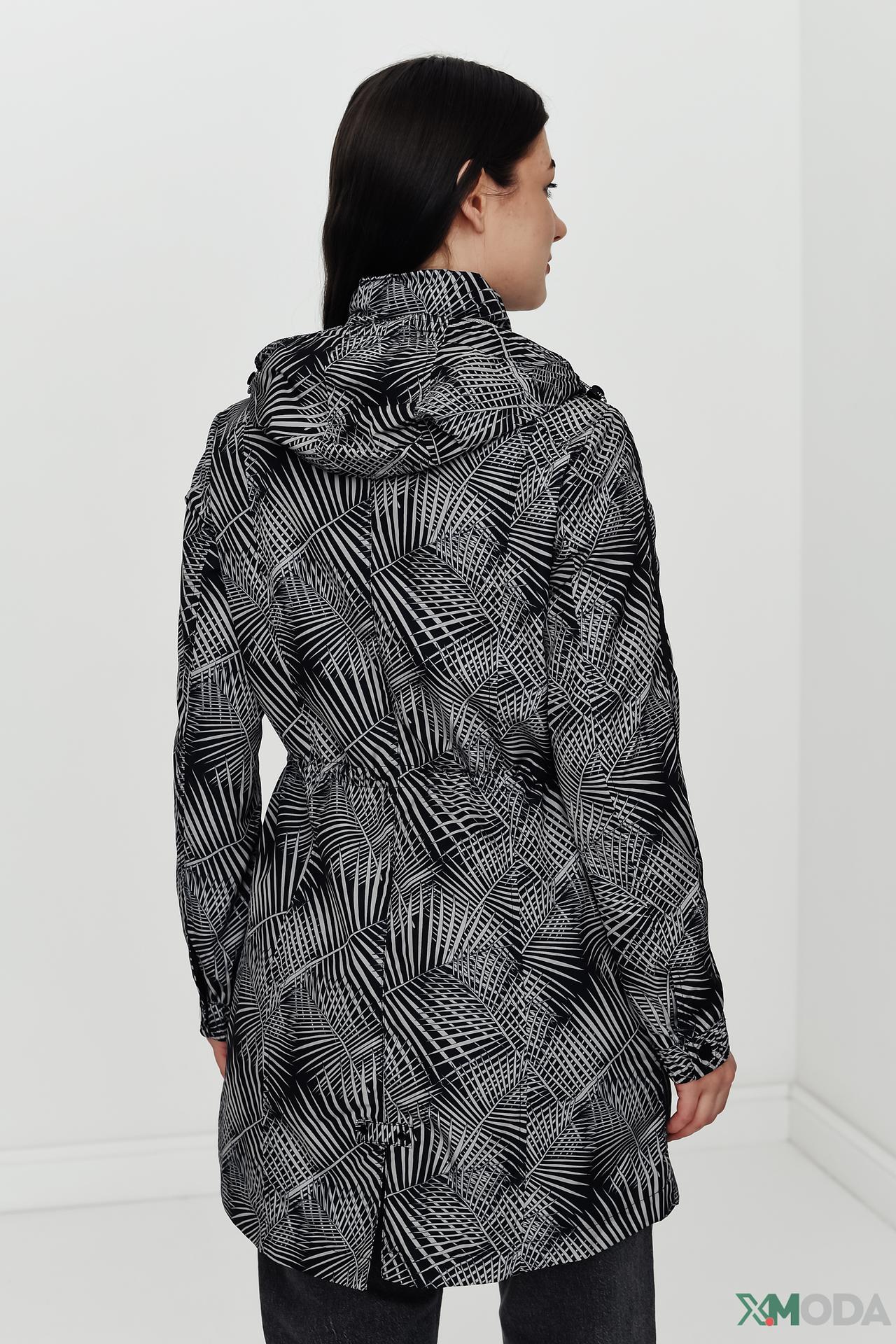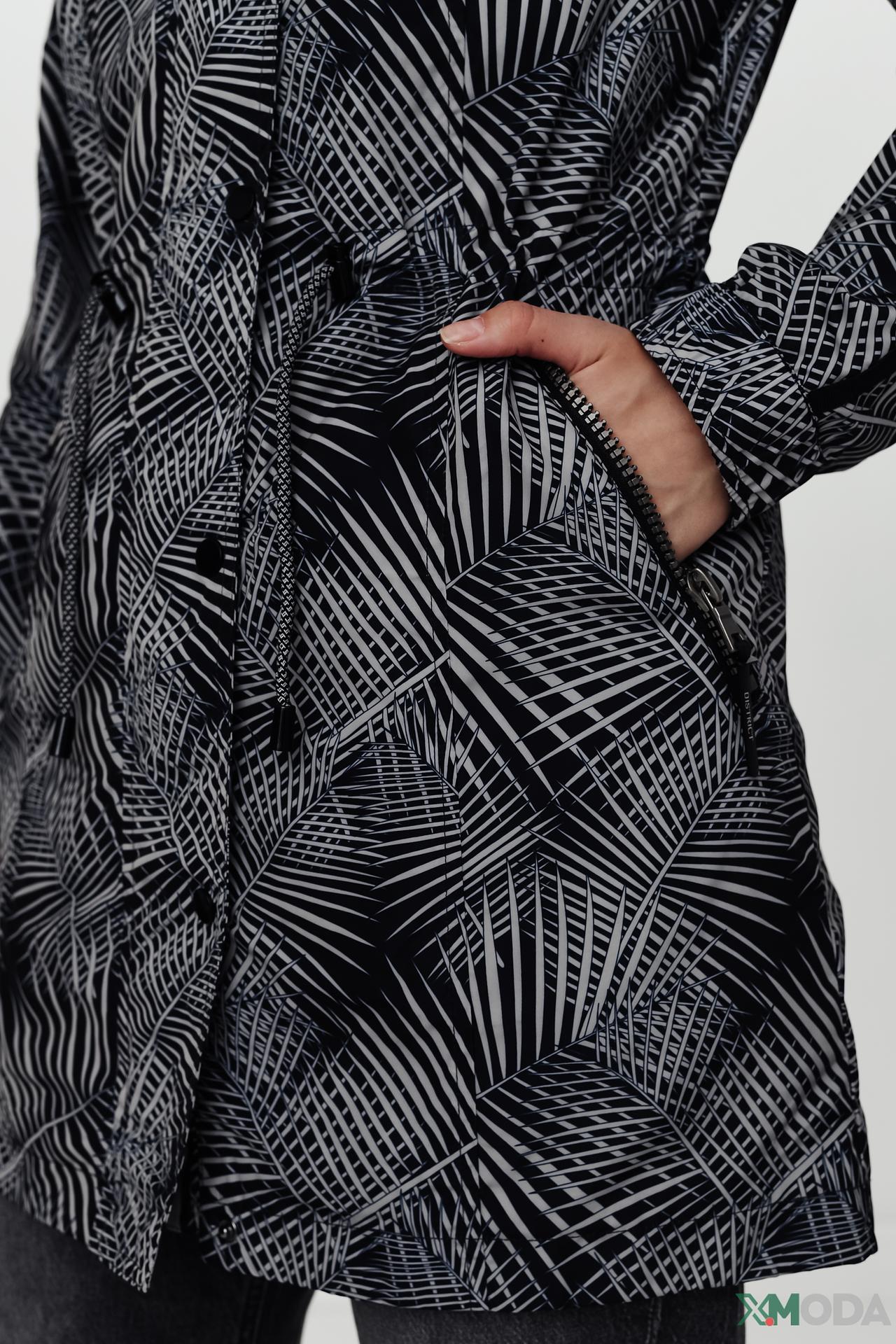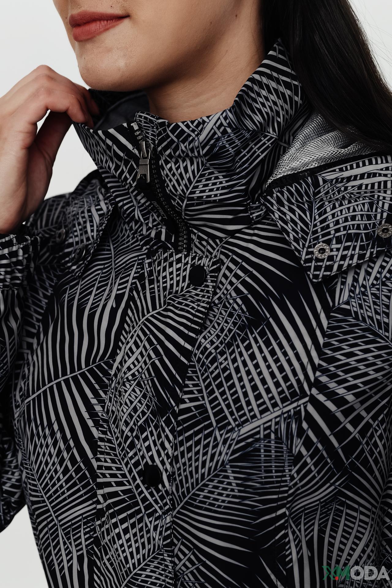 - Дизайн: Современный крой и эффектный черно-белый принт с изображением пальмовых листьев добавляют образу динамичности и индивидуальности. Куртка имеет удобный капюшон и застежку-молнию.