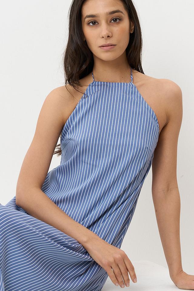 Длинное платье от BE YOU станет прекрасным дополнением к летнему гардеробу. Модель выполнена в голубую полоску, что придает ей свежесть и легкость.