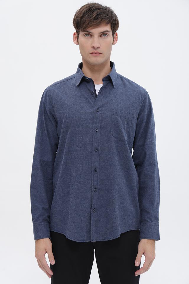 Рубашка имеет классический крой с длинными рукавами и стандартной посадкой. Застежка на пуговицы по всей длине обеспечивает удобство надевания и снятия. На груди расположен накладной карман, добавляющий функциональности и стиля.