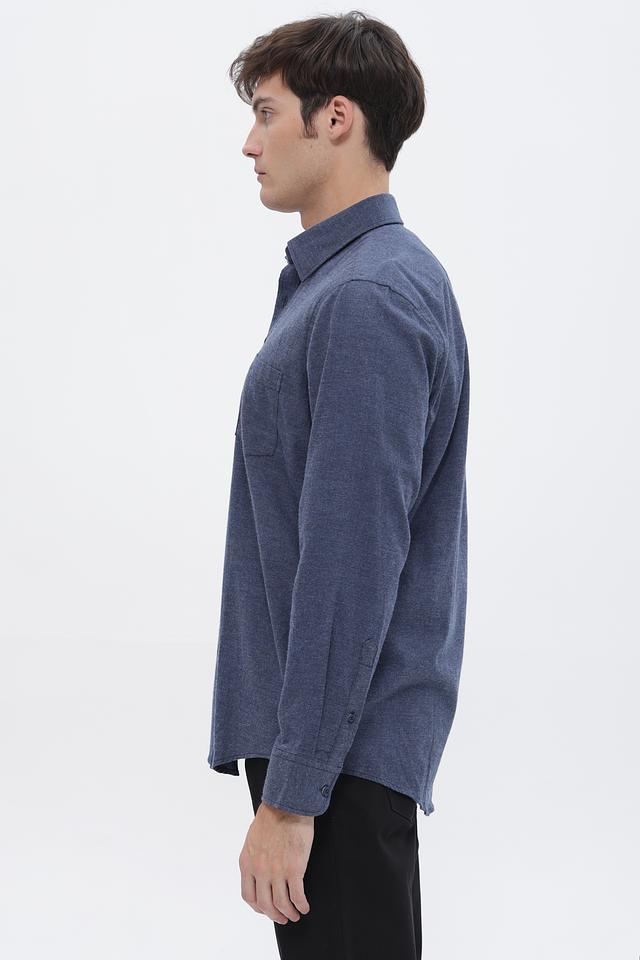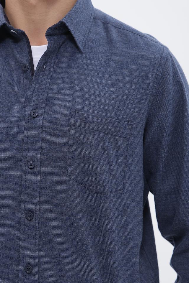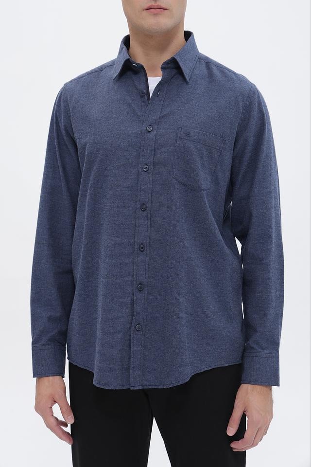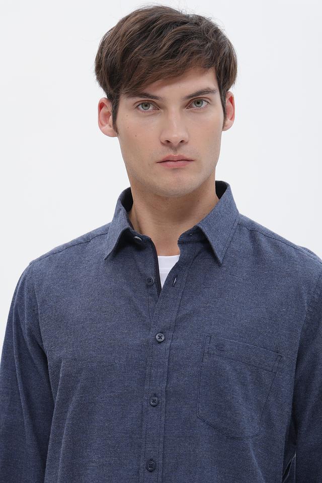 Ткань рубашки имеет приятную текстуру и деликатный рисунок, что придает ей особый шарм. Синий цвет рубашки легко сочетается с различными элементами гардероба, позволяя создавать разнообразные образы. Эта рубашка станет незаменимой частью вашего повседневного стиля.
