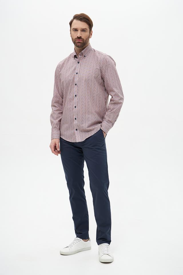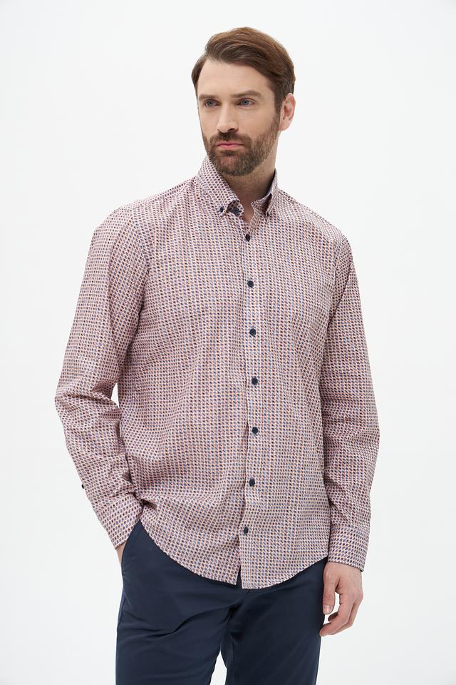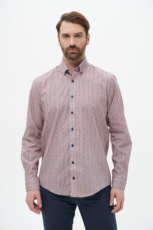 Мужская рубашка Casa Moda светло-розового цвета с геометрическим принтом. Изготовлена из 100% хлопка, обеспечивающего комфорт и воздухопроницаемость. Классический крой и приталенный силуэт. Состав: хлопок 100%