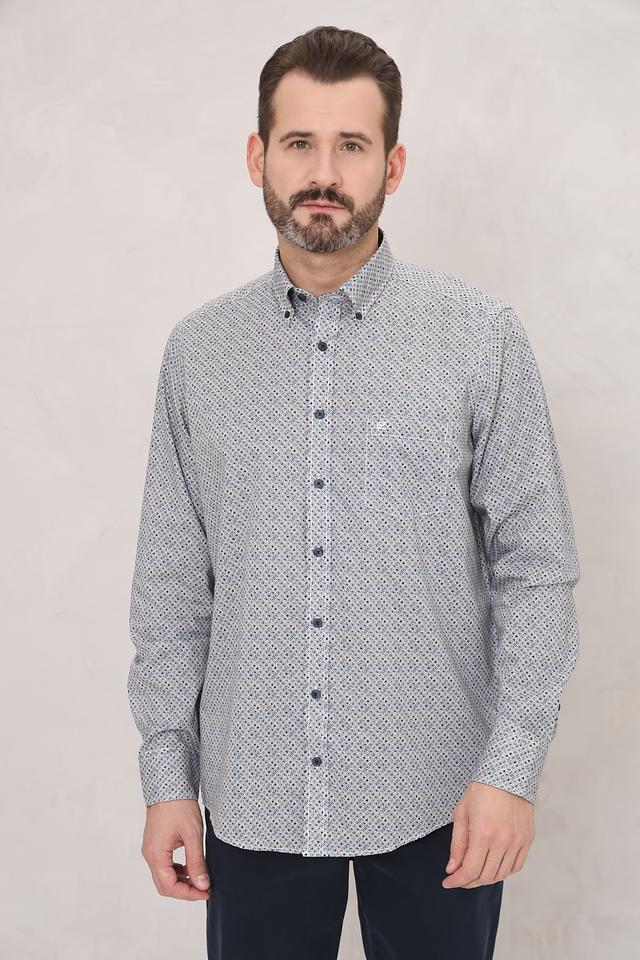 Стильная мужская рубашка Casa Moda серого цвета с оригинальным геометрическим принтом. Изготовлена из 100% хлопка, обеспечивающего комфорт и воздухопроницаемость. Идеальный выбор для создания повседневного образа. Состав: хлопок 100%