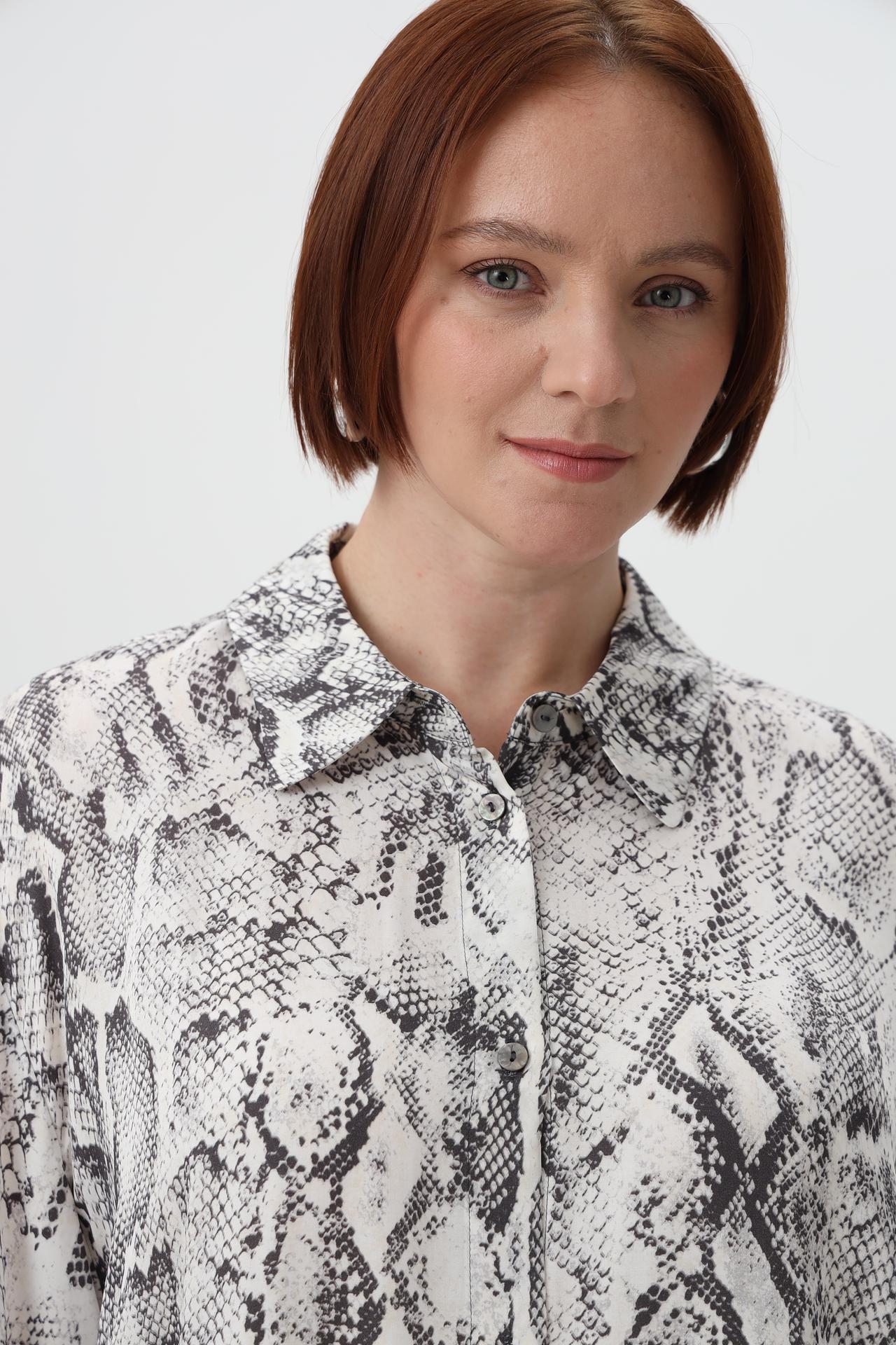 - Дизайн: Оригинальный принт "змея" в контрастных оттенках делает эту рубашку стильной и привлекательной. Классический воротник и пуговицы добавляют элегантности.