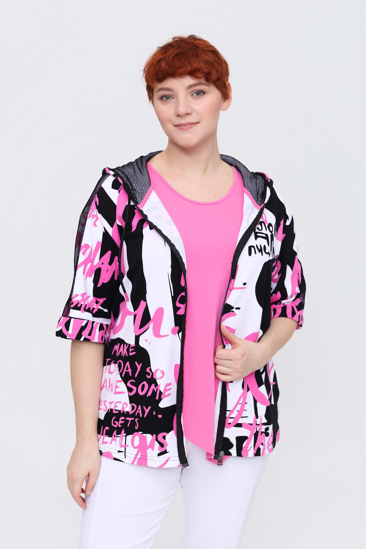Жакет Doris Streich — это стильное и комфортное решение для создания динамичных повседневных образов. Модель свободного кроя с ярким абстрактным принтом в контрастных розовых, черных и белых оттенках подчеркнет вашу индивидуальность. Укороченные рукава и удобная молния по всей длине делают этот женский жакет идеальным для активного отдыха и прогулок.