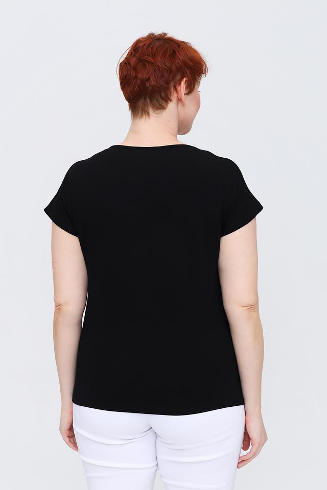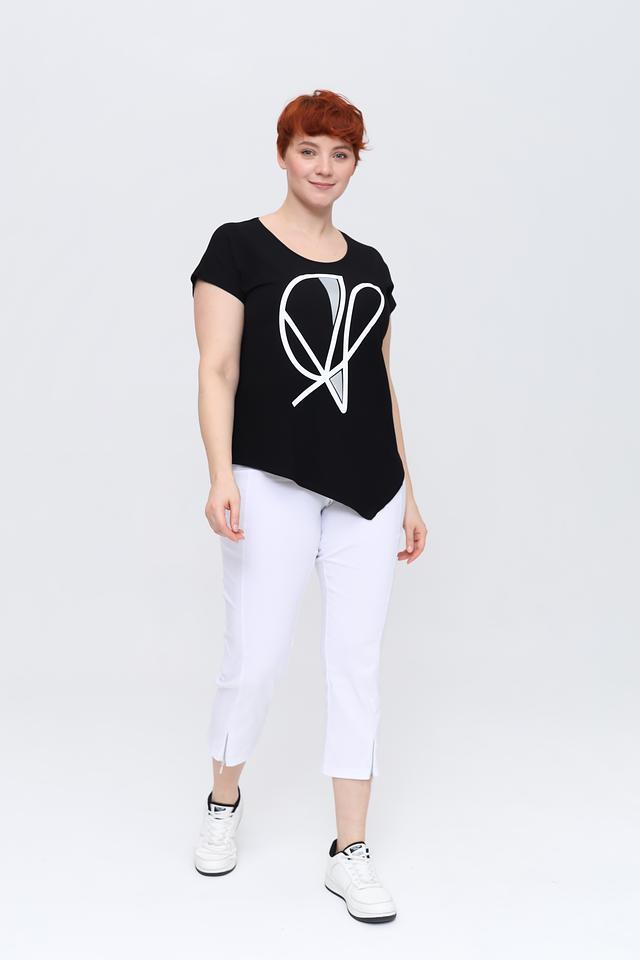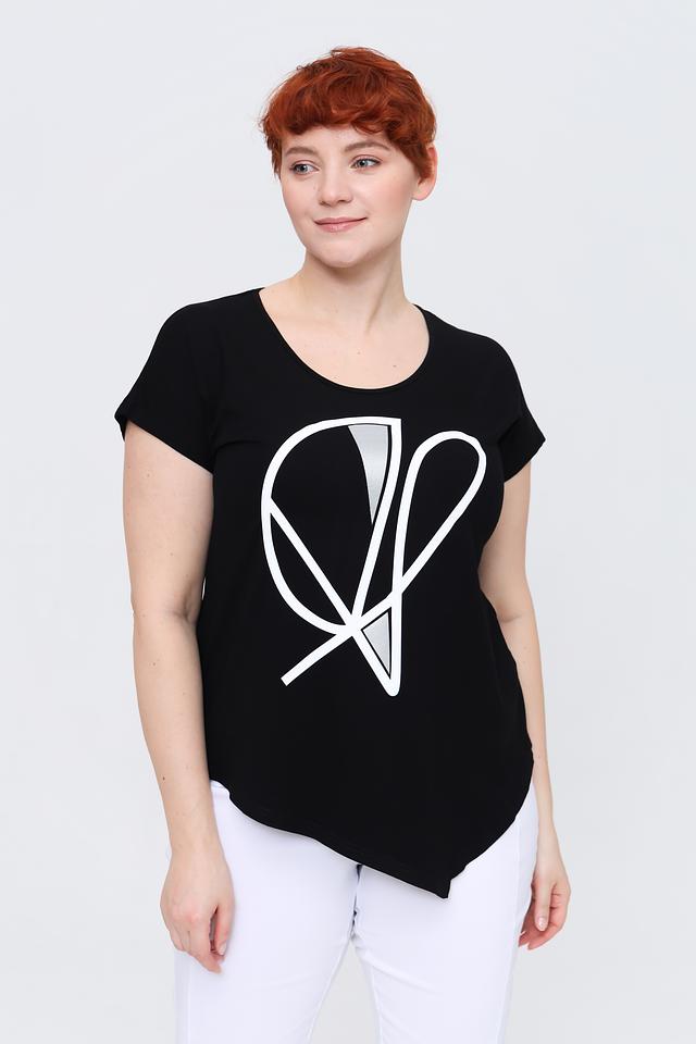 Чёрная футболка от Doris Streich с оригинальным белым принтом – стильное и комфортное решение для повседневного образа. Изготовлена из мягкой вискозы с добавлением эластана, обеспечивающего удобную посадку. Состав: вискоза 96%, эластан 4%
