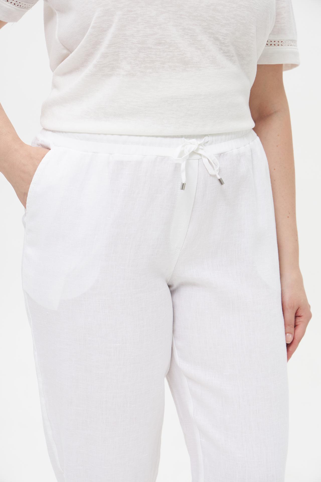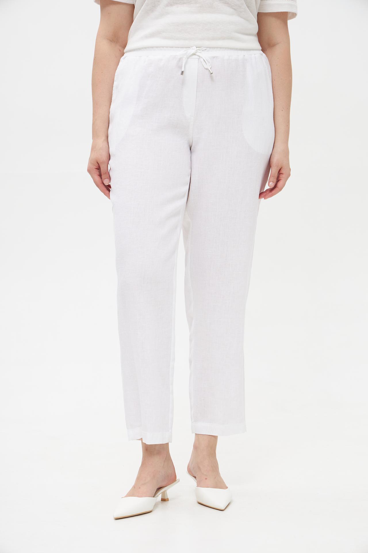 - Универсальный стиль: Белые льняные брюки легко сочетаются с различными элементами гардероба. Их можно носить с футболками, блузами, топами и жакетами, создавая разнообразные образы для разных случаев.