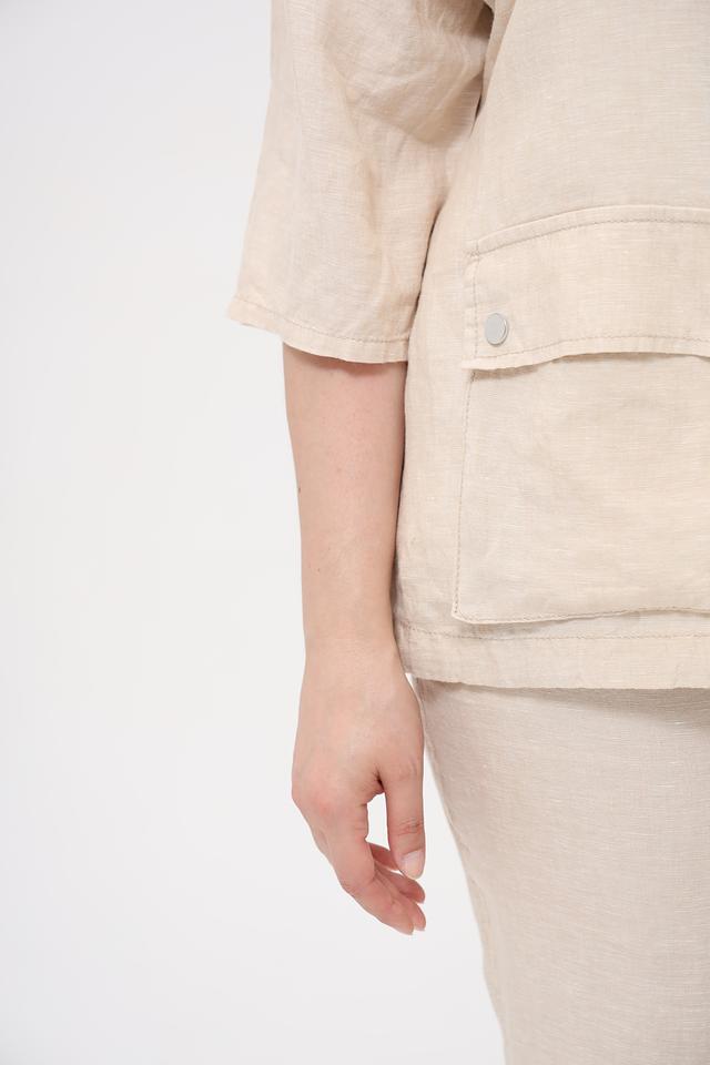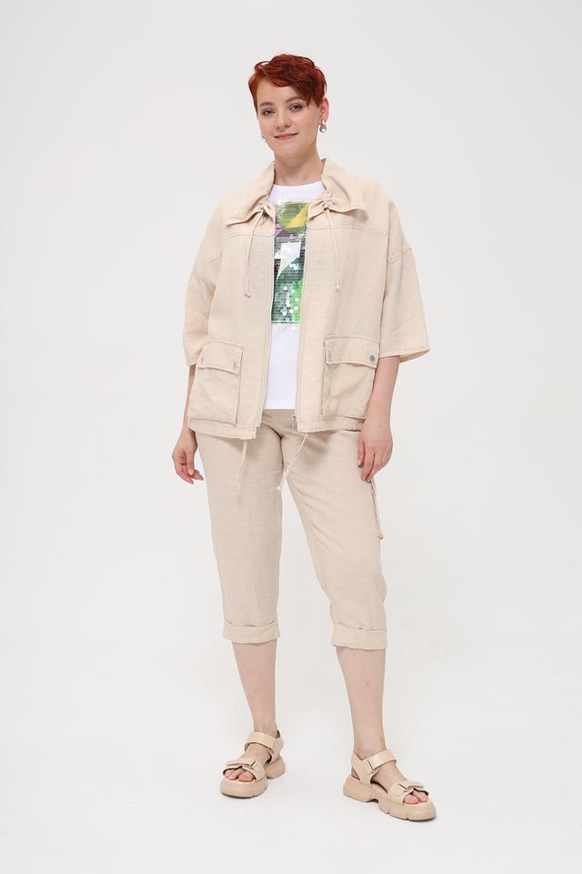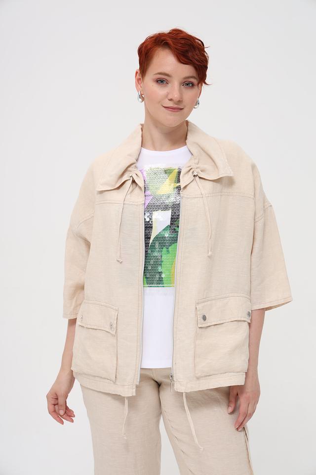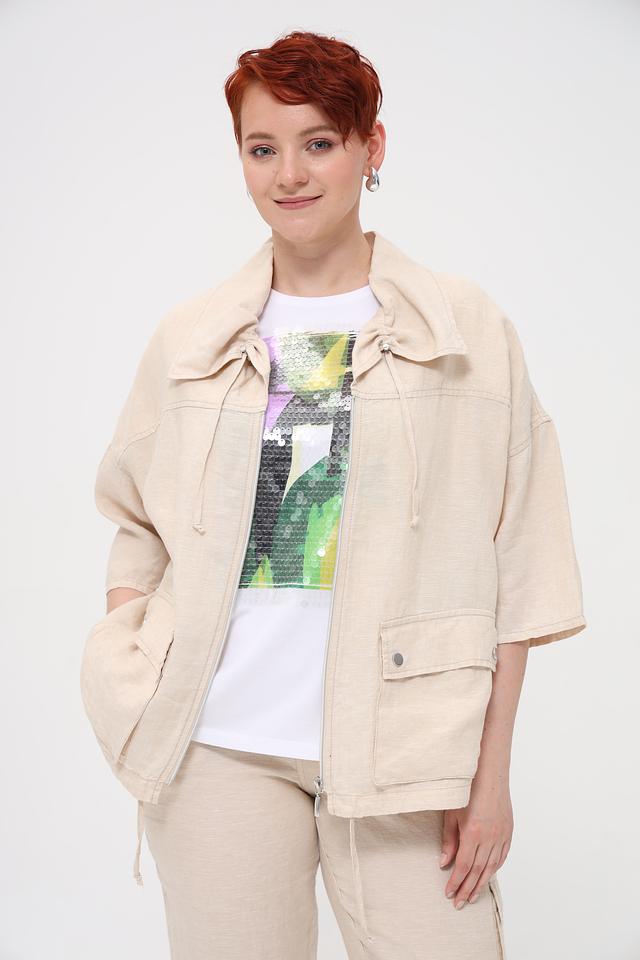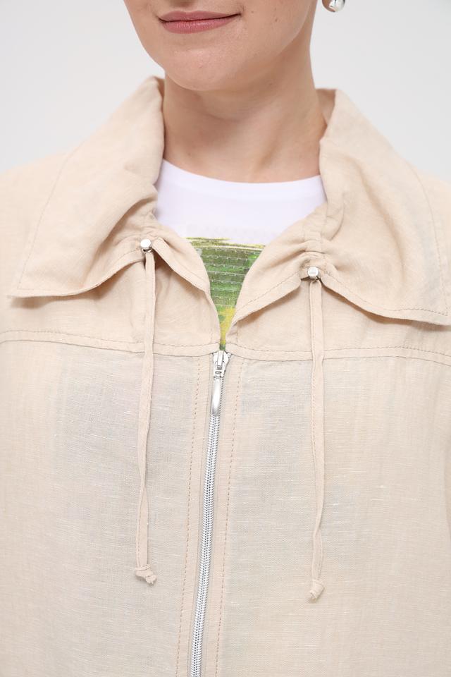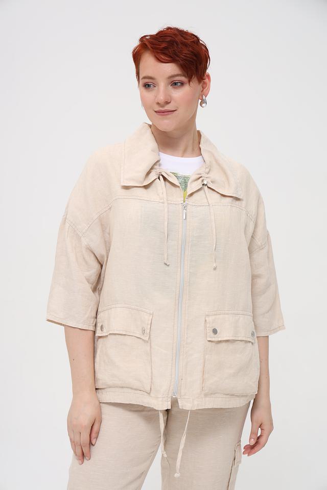Бежевый жакет от Doris Streich – это стильная и удобная модель с короткими рукавами и застежкой на молнию. Жакет выполнен из натурального льна, что делает его идеальным выбором для теплой погоды. Состав: лен 100%