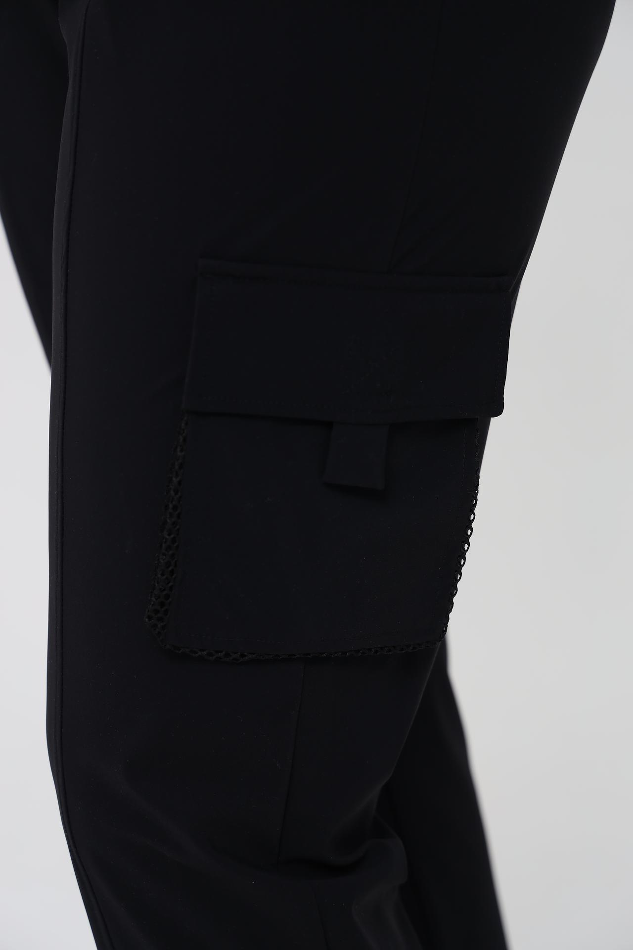 - Детали: Акцентный накладной карман с декоративной сетчатой вставкой и кулиска на талии для регулировки посадки. Эти элементы придают брюкам современный и модный вид.