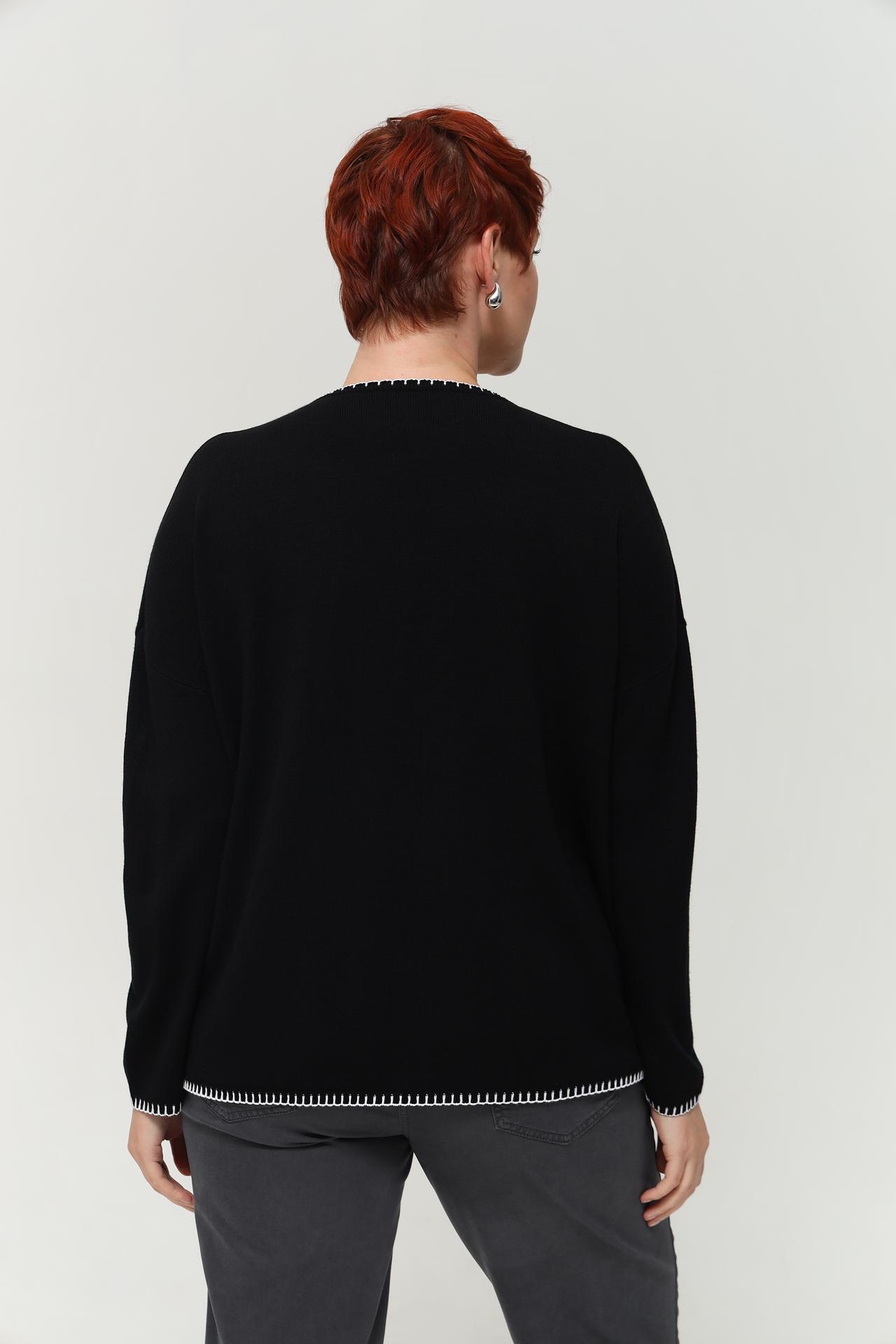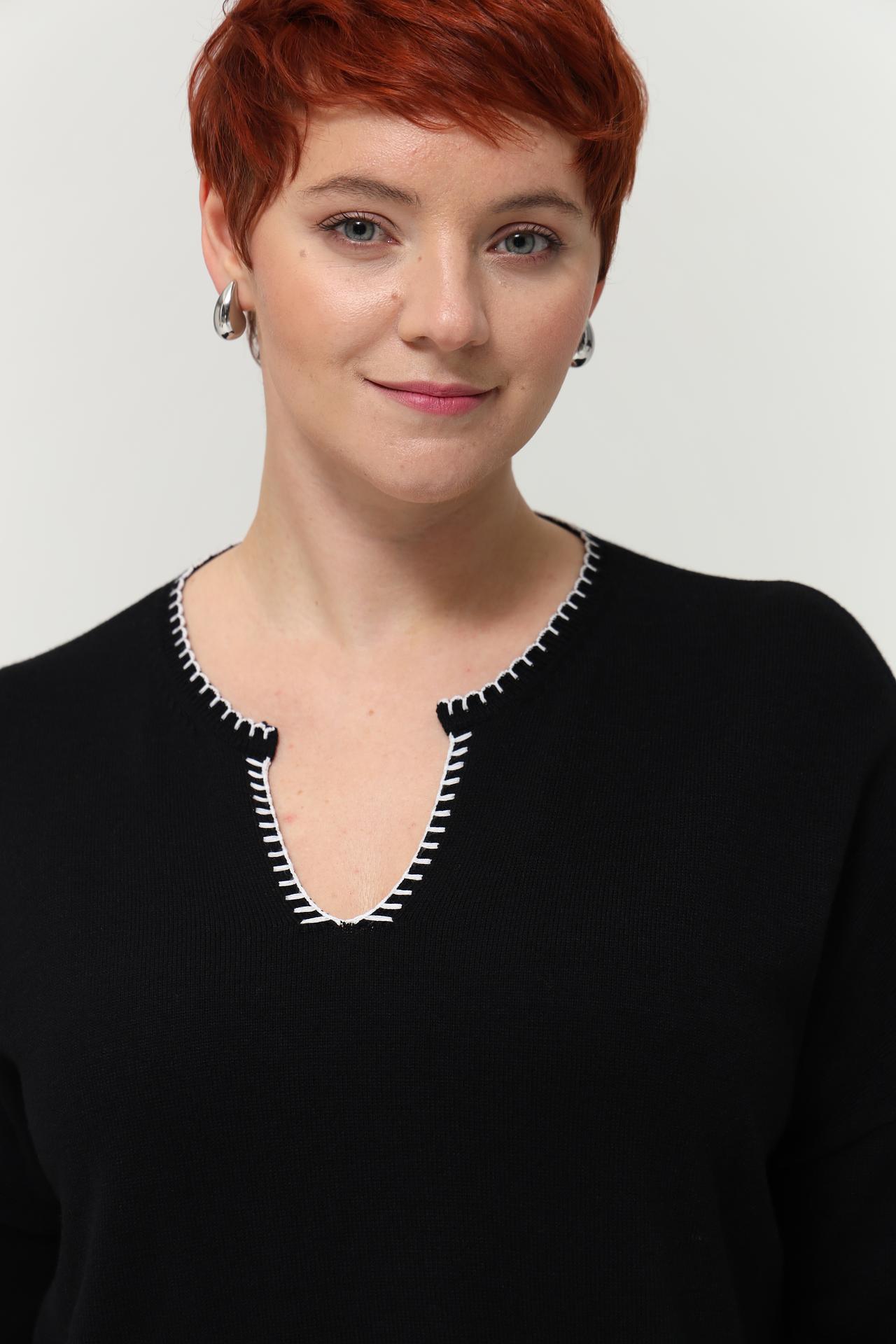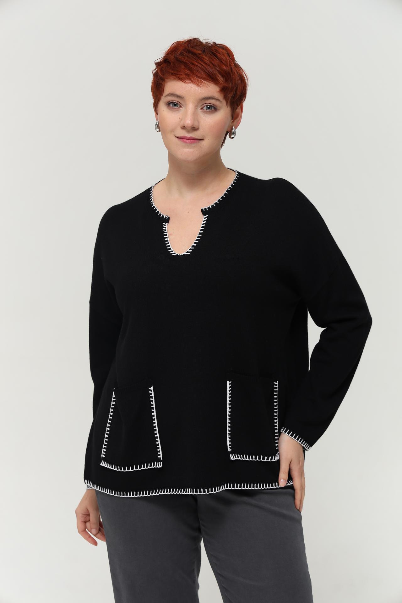 Элегантный пуловер от Doris Streich — идеальное дополнение к вашему гардеробу. Классический чёрный цвет в сочетании с контрастной белой отделкой придаёт изделию утончённость и стиль. Универсальный дизайн делает его подходящим как для повседневных образов, так и для более формальных случаев.