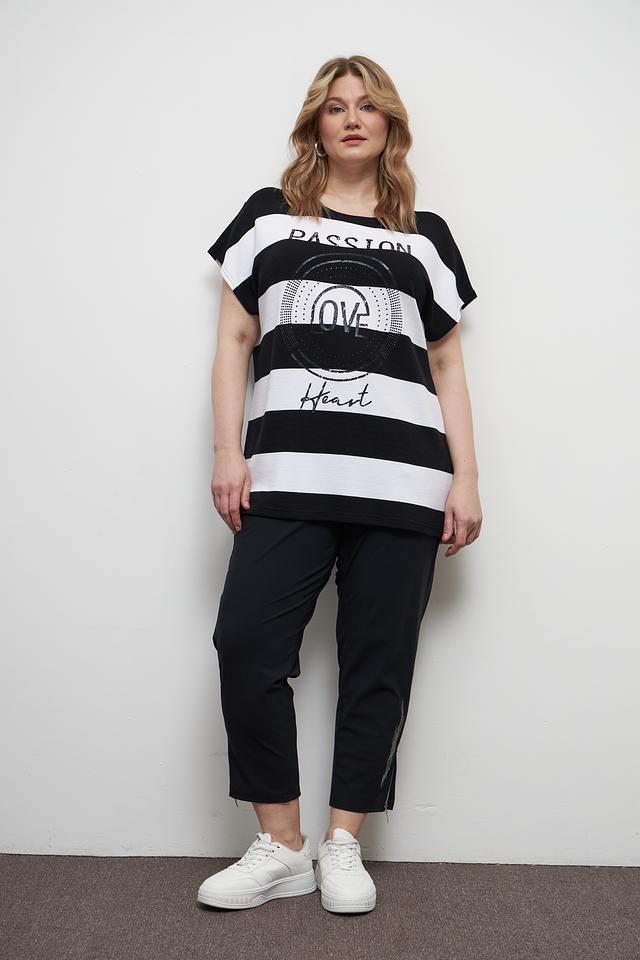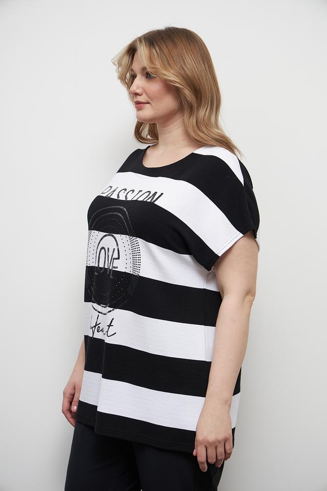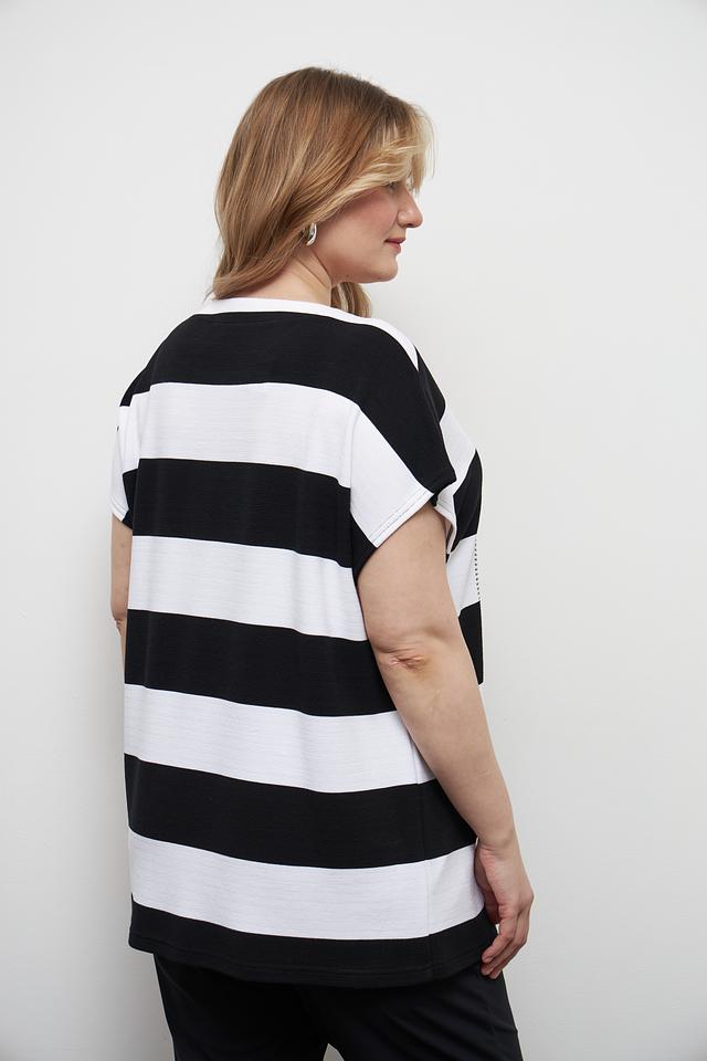 Эта стильная футболка от бренда Doris Streich станет отличным дополнением к вашему гардеробу. Модель выполнена в классическом чёрно-белом сочетании полоски, что делает её универсальной и легко сочетаемой с другими вещами.