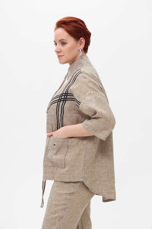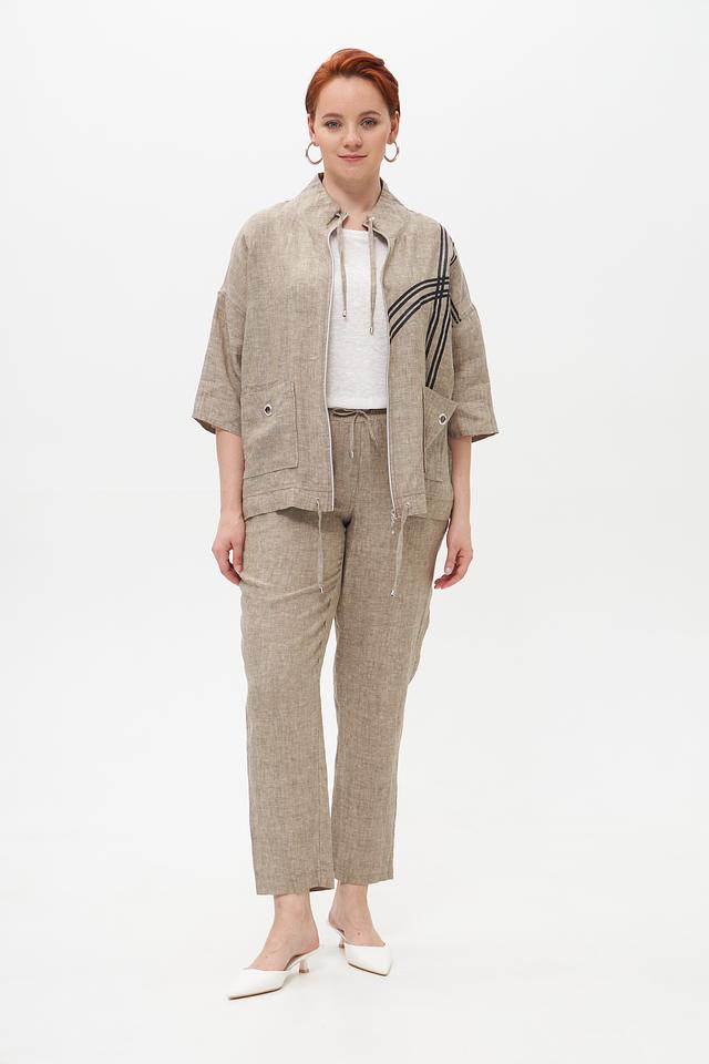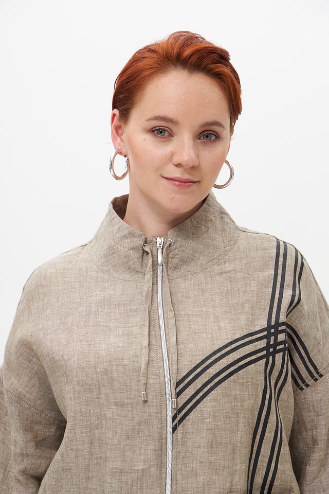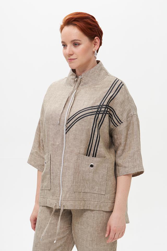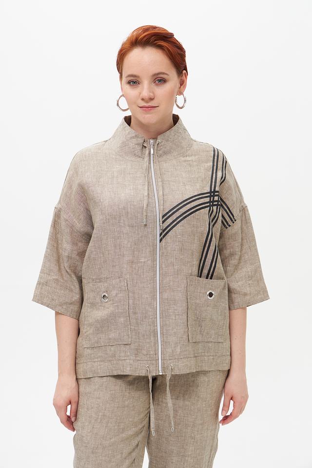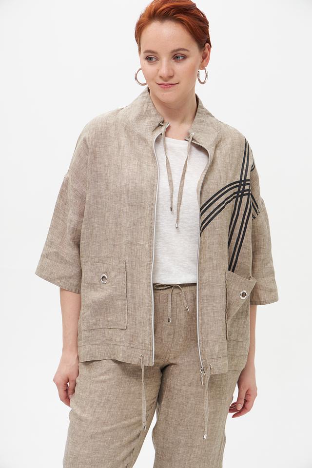 Бежевый льняной жакет от Doris Streich — стильное и комфортное решение для летнего гардероба. Модель выполнена из натурального льна и украшена графичным принтом. Застежка – молния. Состав: лен 100%