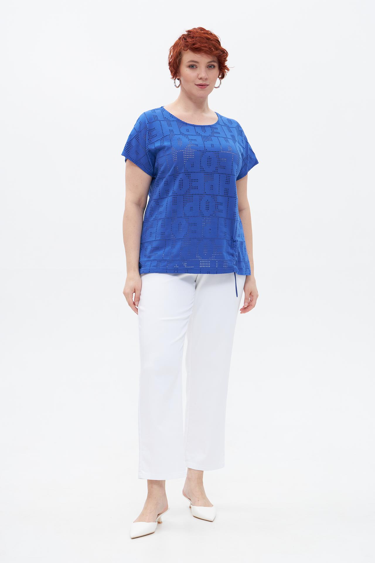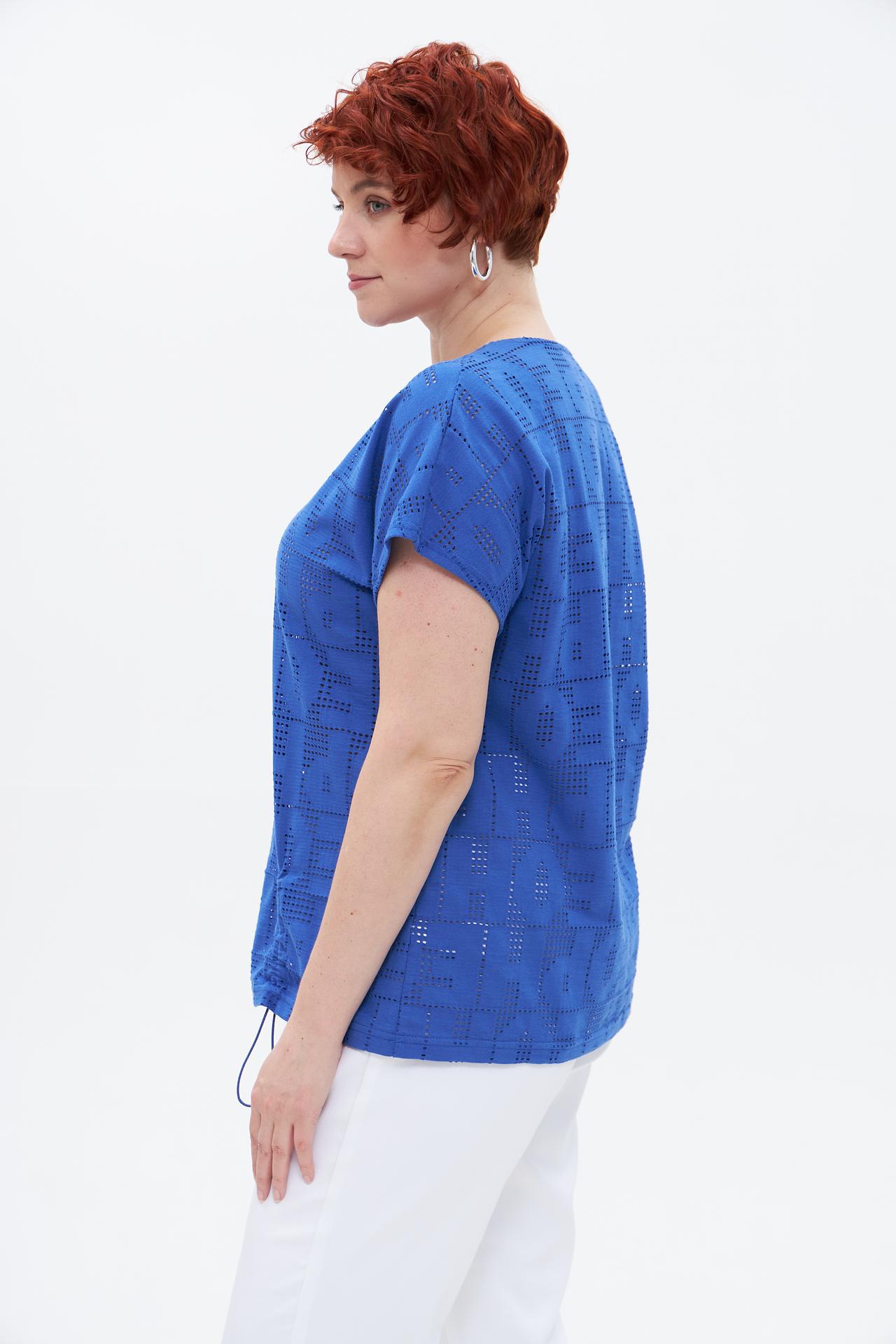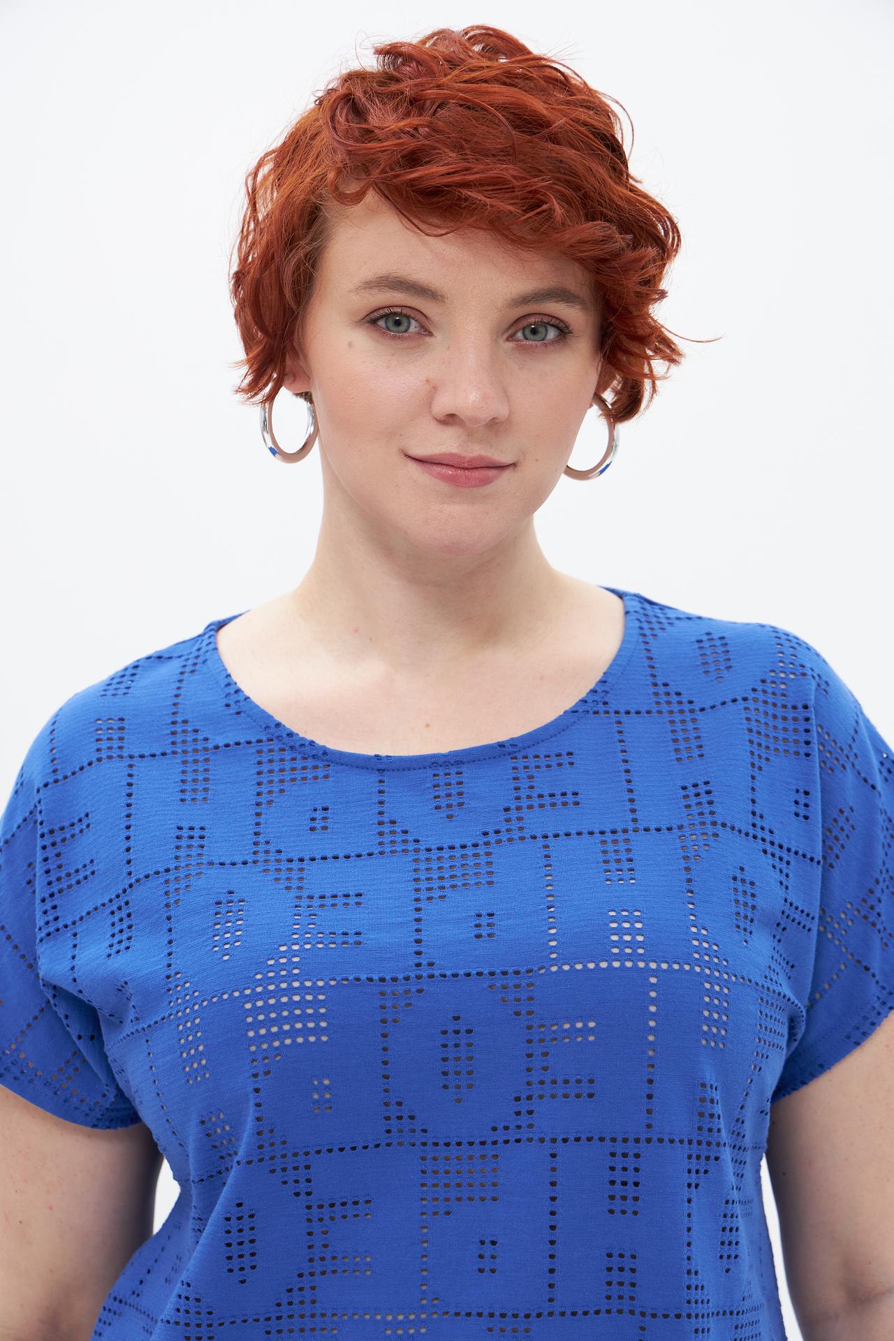 Футболка Doris Streich синяя перфорированная с рисунком LOVE и кулиской
