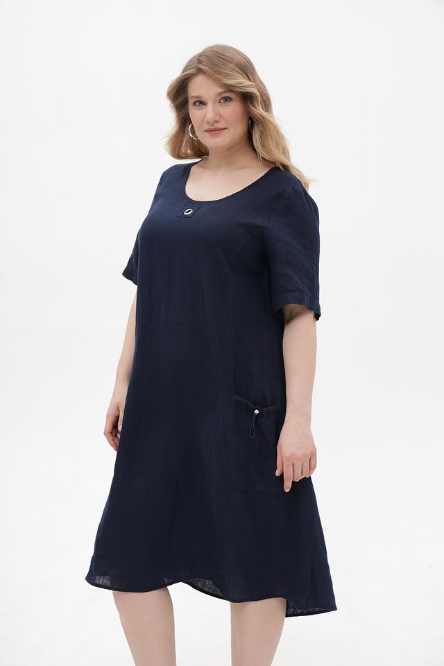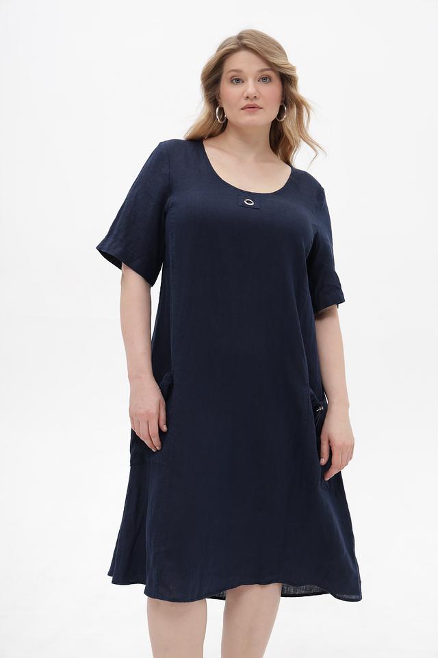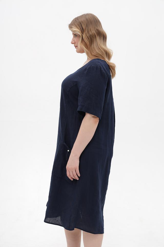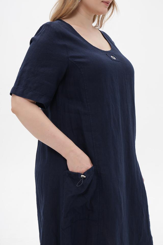 Тёмно-синее льняное платье от Doris Streich – это комфорт и стиль в одном изделии. Платье свободного кроя с короткими рукавами и боковыми карманами идеально подходит для повседневной носки. Изготовлено из 100% натурального льна. Состав: лен 100%