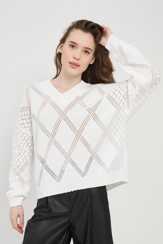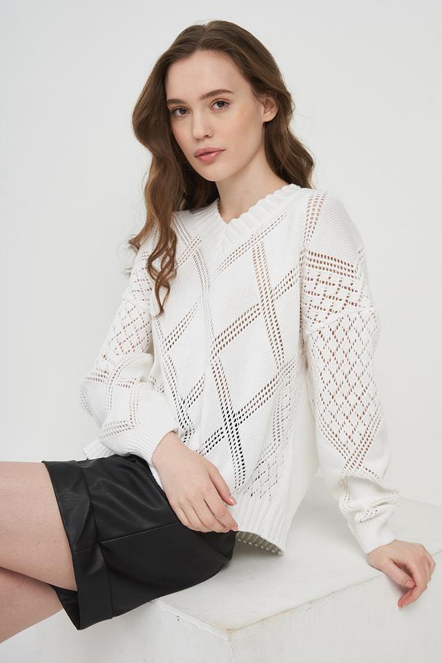 - Ажурный узор: Стильный и актуальный дизайн делает джемпер оригинальным и привлекательным.