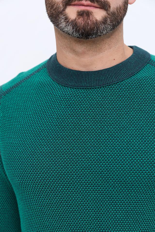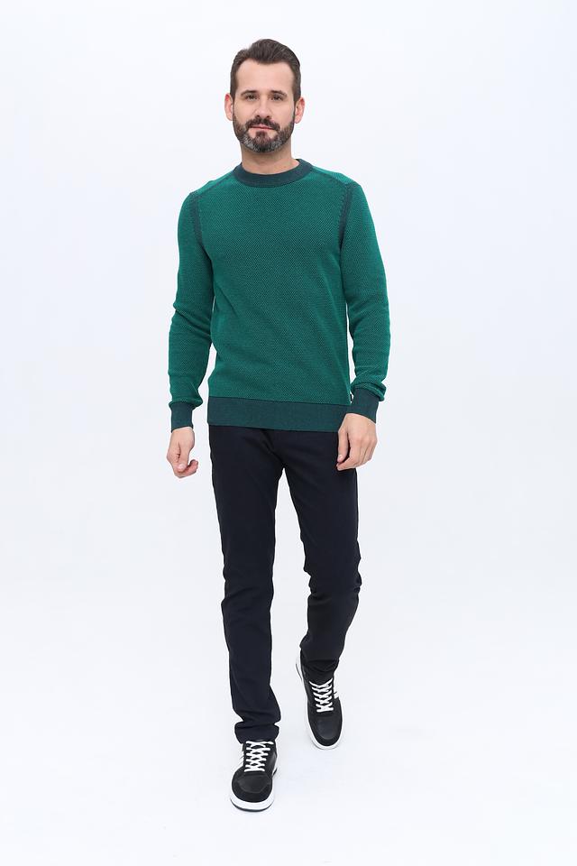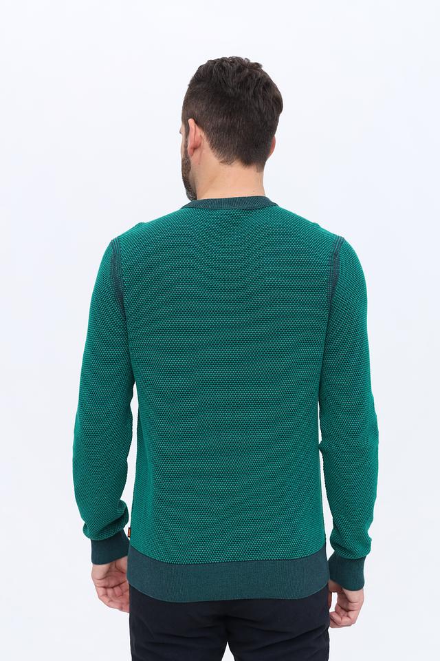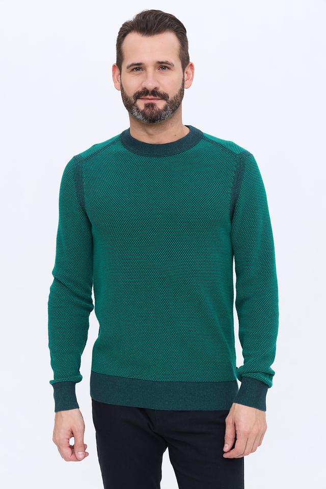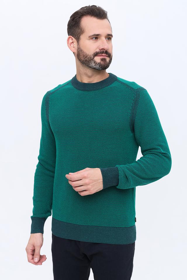 Мужской джемпер Boss Orange зелёного цвета с текстурной вязкой и круглым вырезом горловины. Изготовлен из 100% хлопка, обеспечивающего комфорт и воздухопроницаемость. Стильный и универсальный выбор для повседневного гардероба. Состав: хлопок 100%