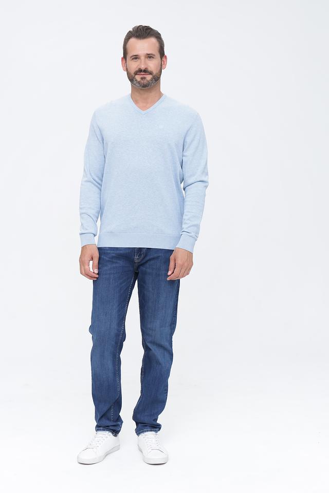 Мужской джемпер Bugatti голубого цвета с V-образным вырезом. Изготовлен из 100% хлопка, обеспечивающего комфорт и воздухопроницаемость. Классический крой и минималистичный дизайн делают этот джемпер универсальным дополнением к любому гардеробу. Состав: хлопок 100%