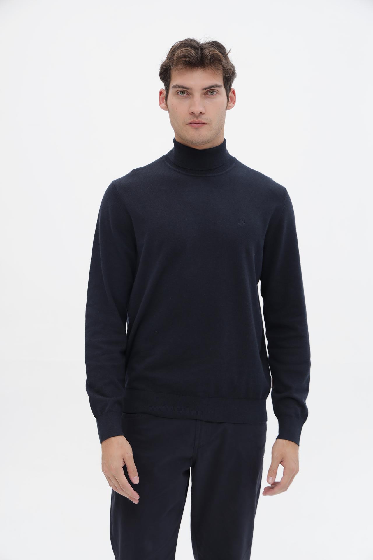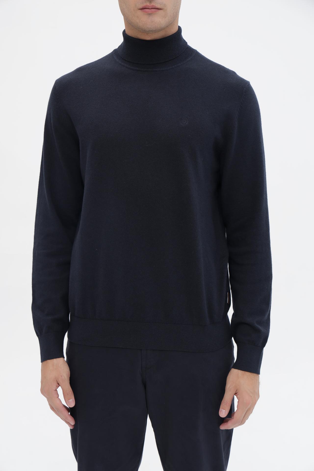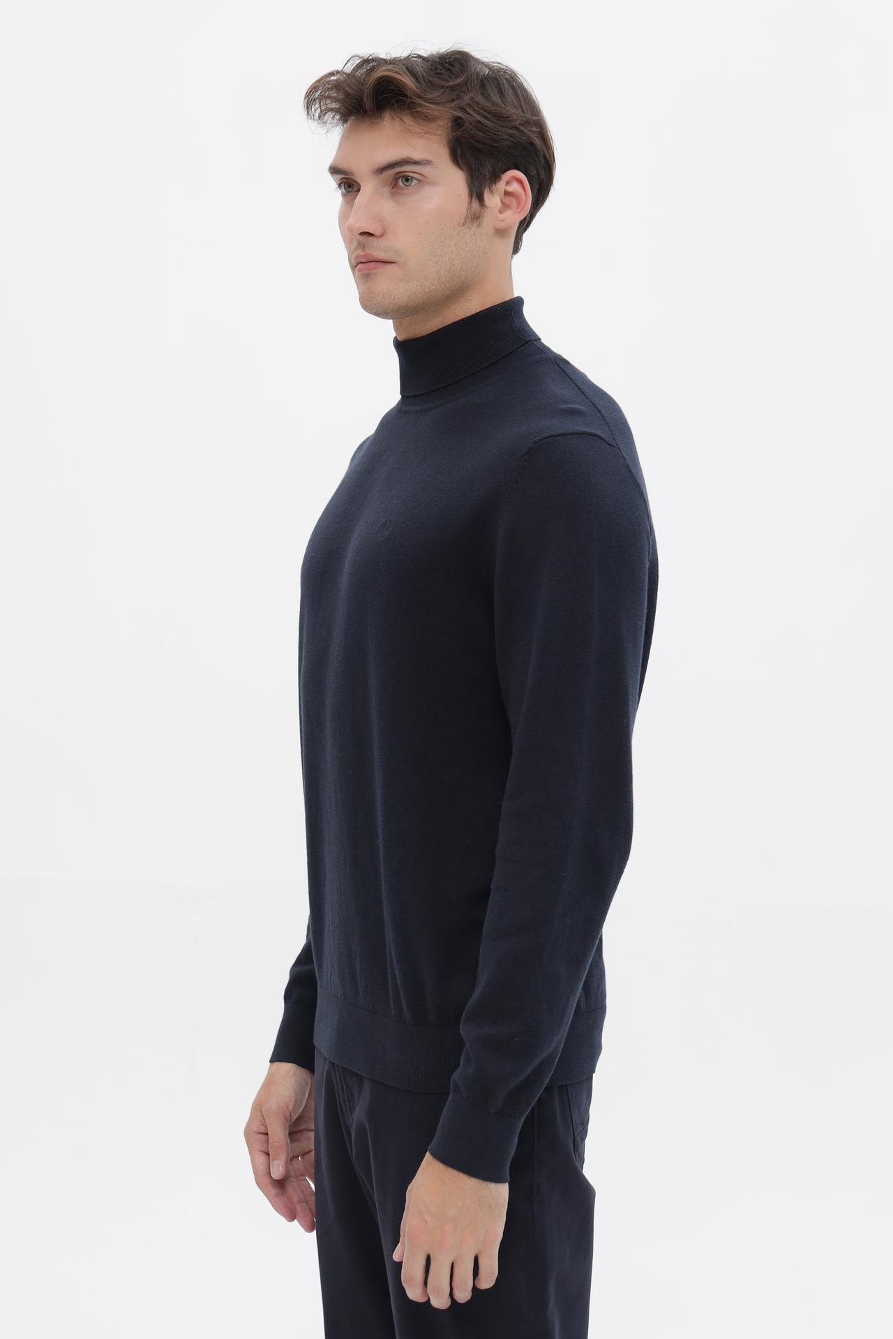 - Дизайн: Классический джемпер с воротником-гольф. Минималистичный дизайн и сдержанный синий цвет позволяют легко сочетать его с различными элементами одежды. Небольшой логотип бренда деликатно акцентирует внимание на качестве изделия.