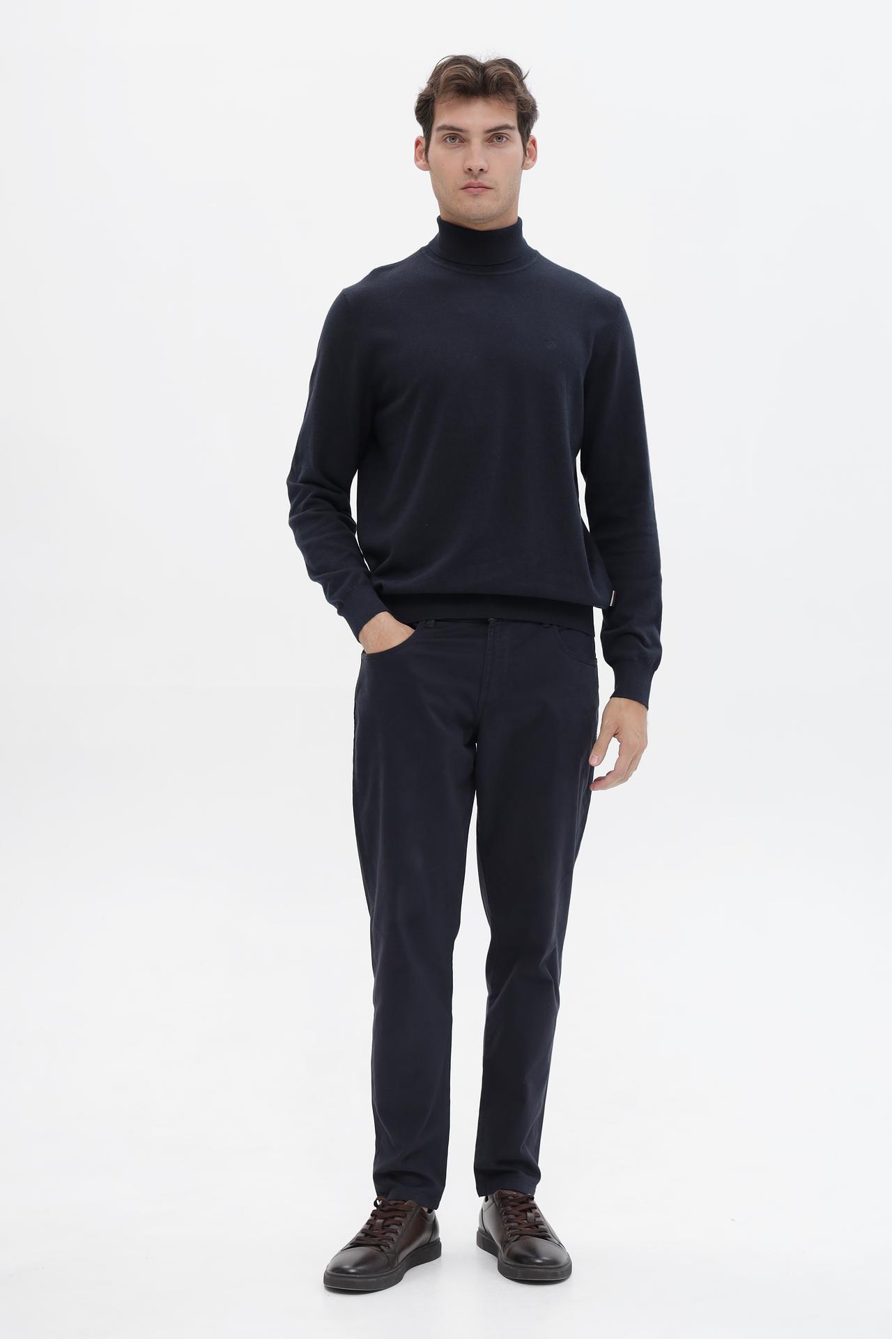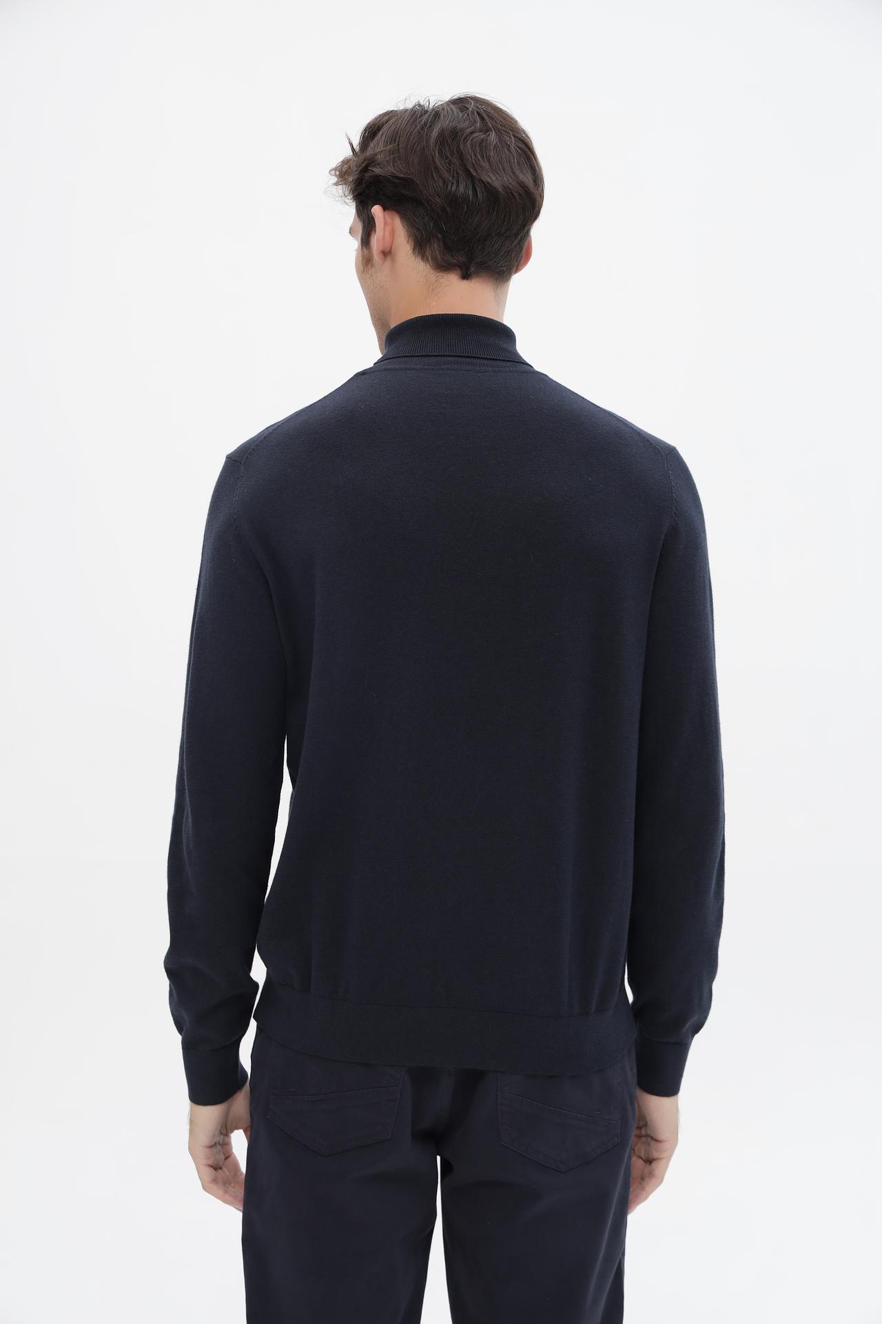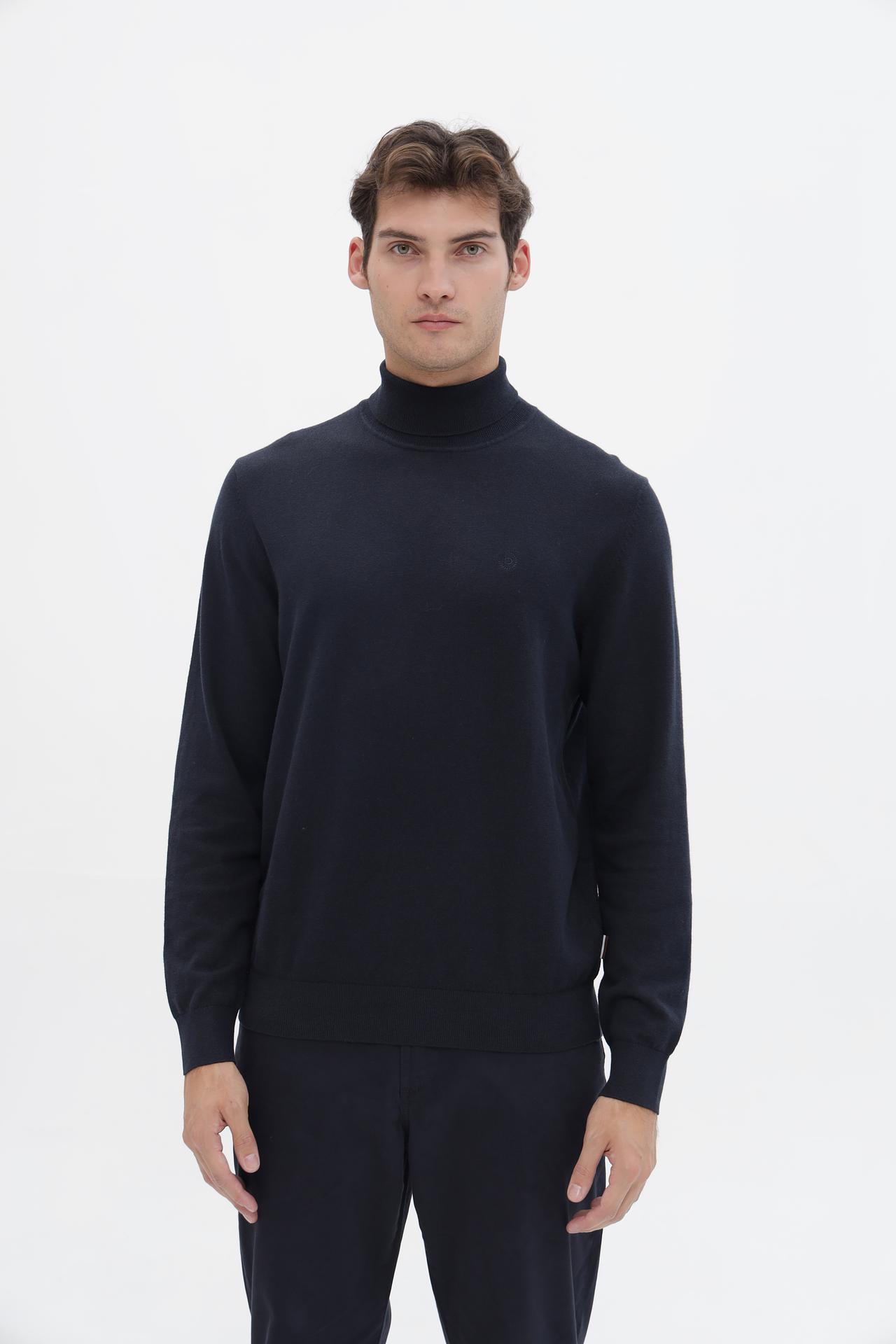 - Дизайн: Классический джемпер с воротником-гольф. Минималистичный дизайн и сдержанный синий цвет позволяют легко сочетать его с различными элементами одежды. Небольшой логотип бренда деликатно акцентирует внимание на качестве изделия.