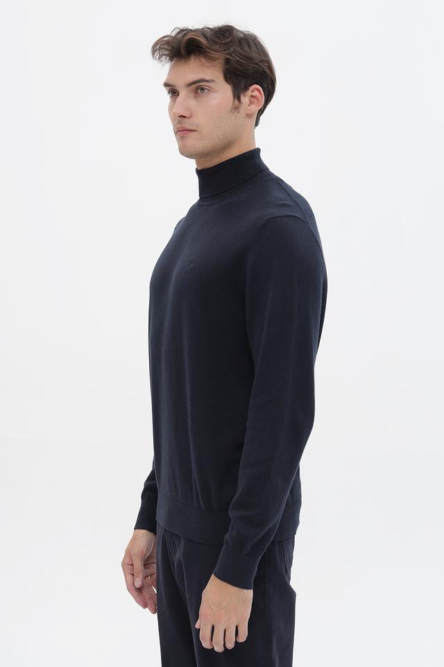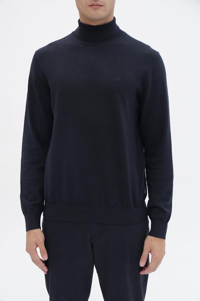 Мужская водолазка Bugatti темно-синего цвета выполнена из мягкого и приятного к телу трикотажа с добавлением кашемира. Классический крой и минималистичный дизайн делают этот джемпер универсальным элементом гардероба. Состав: хлопок 95%, кашемир 5%