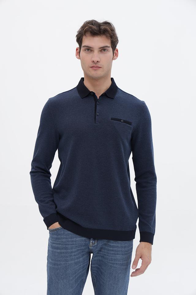 Джемпер Bugatti с воротником-поло тёмно-синий