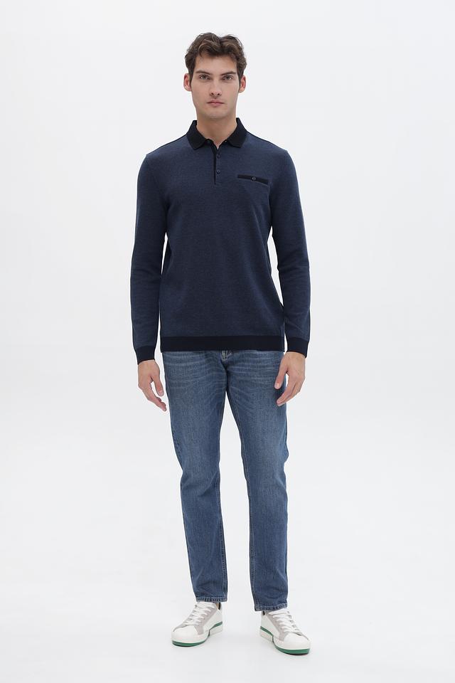 Мужской джемпер Bugatti тёмно-синего цвета с воротником-поло и декоративным карманом. Изготовлен из сочетания полиэстера и хлопка, обеспечивая комфорт и практичность. Стильное решение для повседневного гардероба. Состав: полиэстер 60%, хлопок 40%