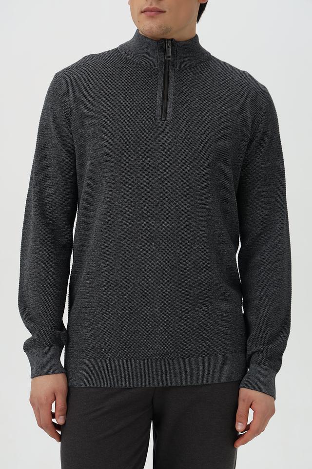 Мужской джемпер от Casa Moda выполнен в сером цвете с меланжированным эффектом. Модель имеет удобную горловину с короткой молнией, что позволяет регулировать степень защиты от холода.