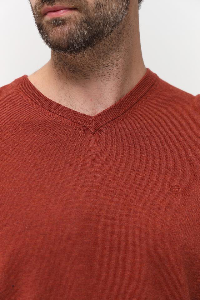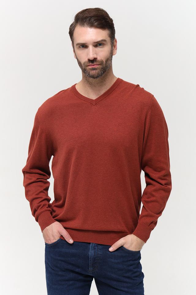 Мужской джемпер Casa Moda рыжего цвета с V-образным вырезом. Изготовлен из 100% хлопка, обеспечивающего комфорт и воздухопроницаемость. Классический дизайн делает его универсальным дополнением к любому гардеробу. Состав: хлопок 100%