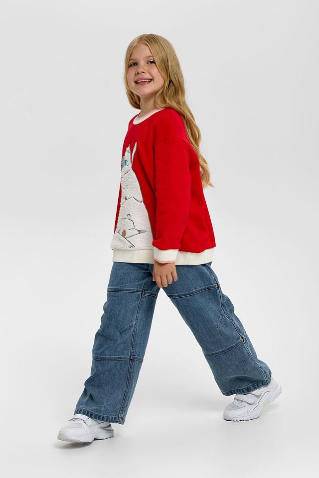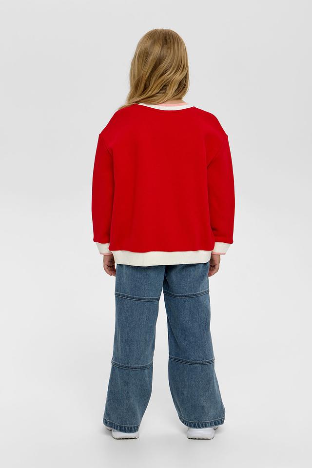- Дизайн: Красный джемпер с объемной аппликацией "Кот и медведи" и контрастной трикотажной резинкой по горлу и низу изделия. Принт выполнен с использованием качественных материалов, которые сохраняют яркость цветов после многочисленных стирок.