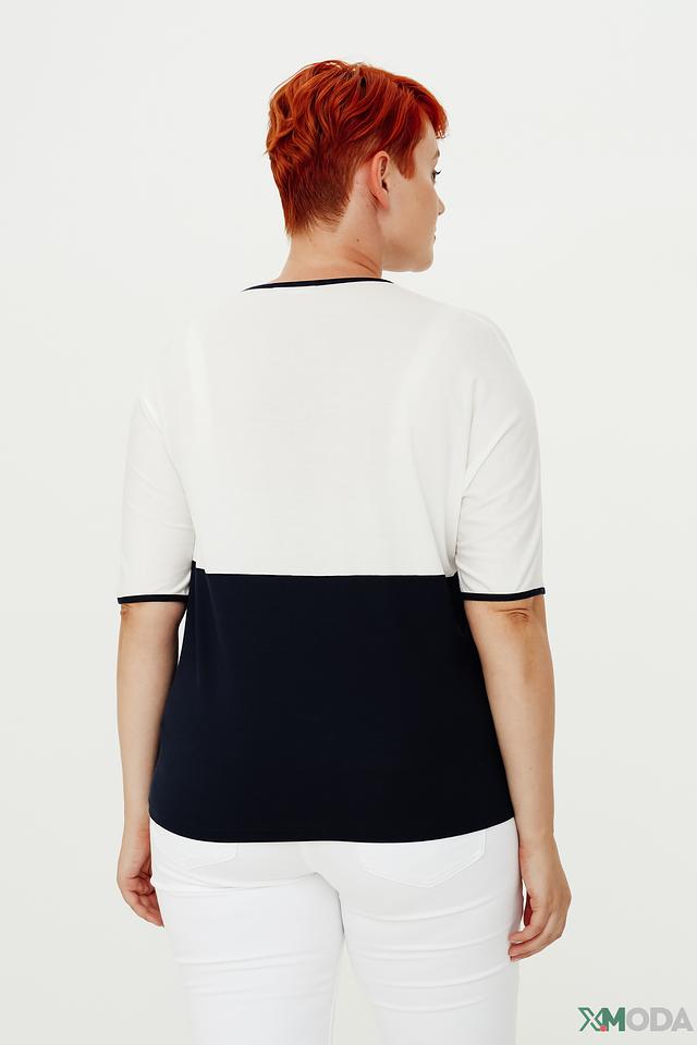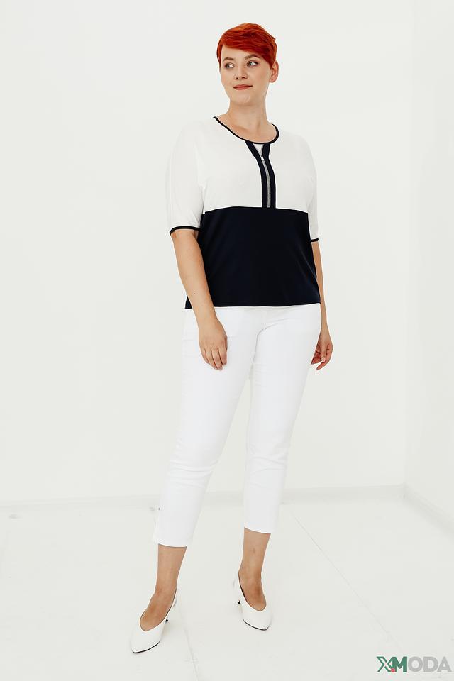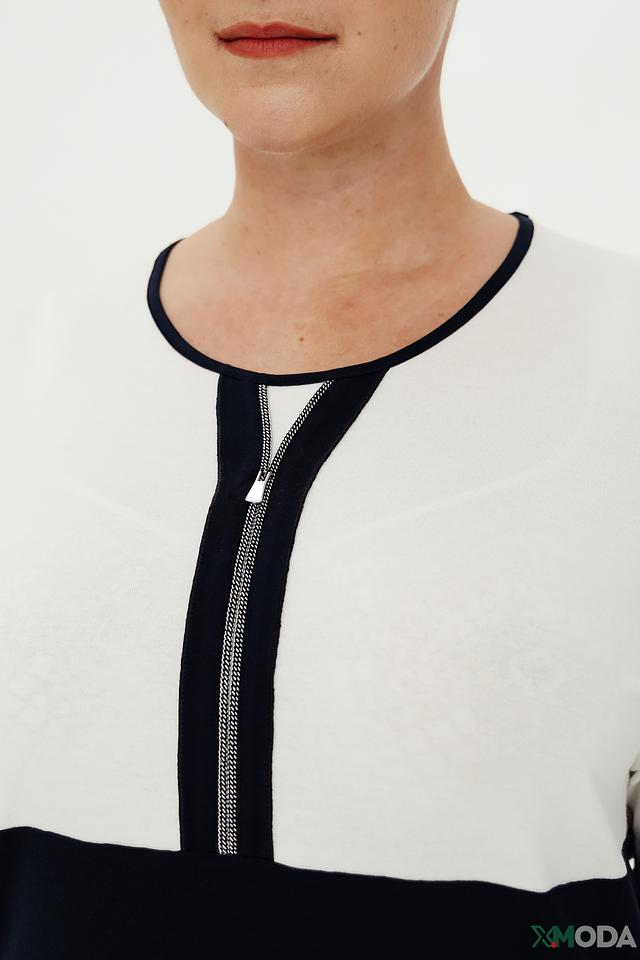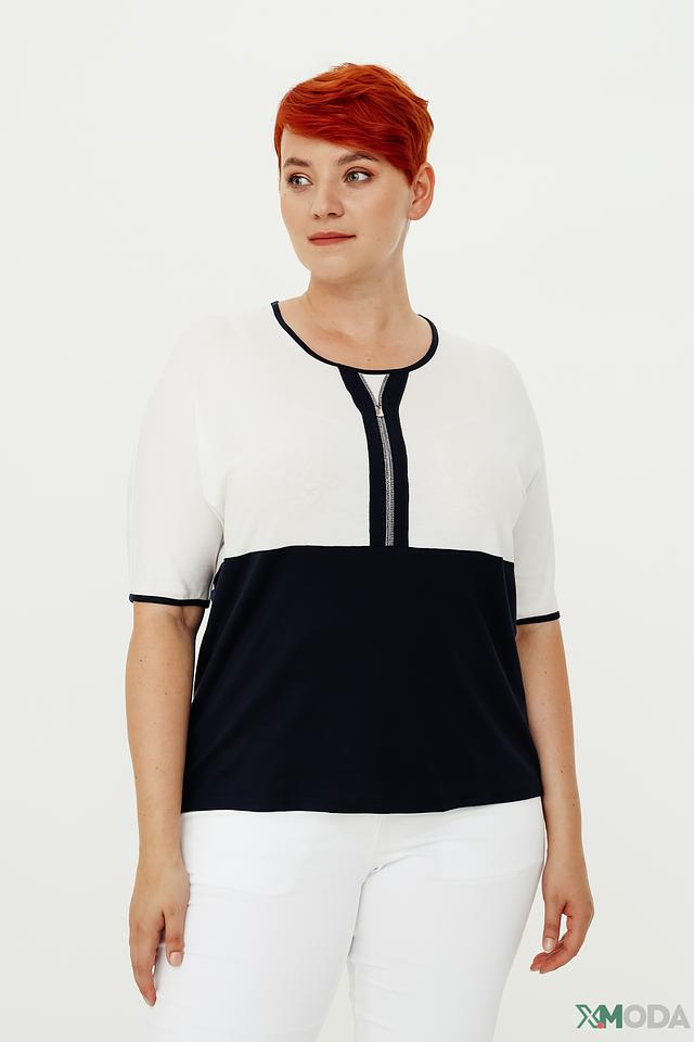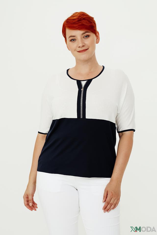 Женский джемпер Frank Walder сочетает в себе белый и тёмно-синий цвета, дополненный контрастной молнией. Модель с короткими рукавами и лаконичным дизайном станет отличным дополнением к вашему гардеробу. Состав: вискоза 93%, эластан 7%