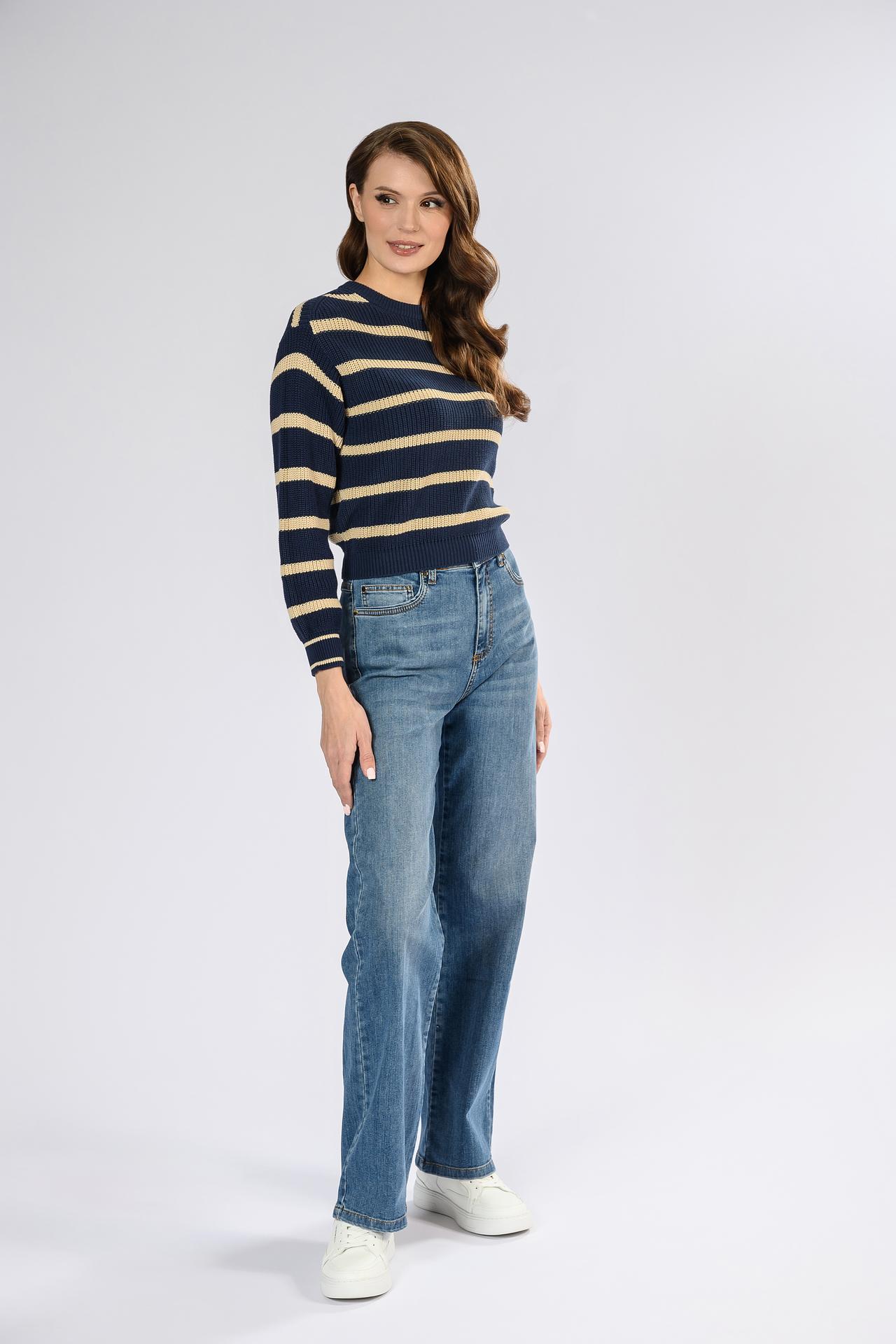 - Дизайн: Классический джемпер с горизонтальными полосками – стильный и универсальный вариант для любого гардероба.