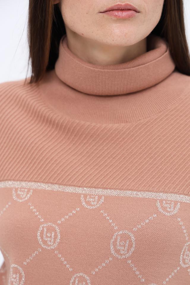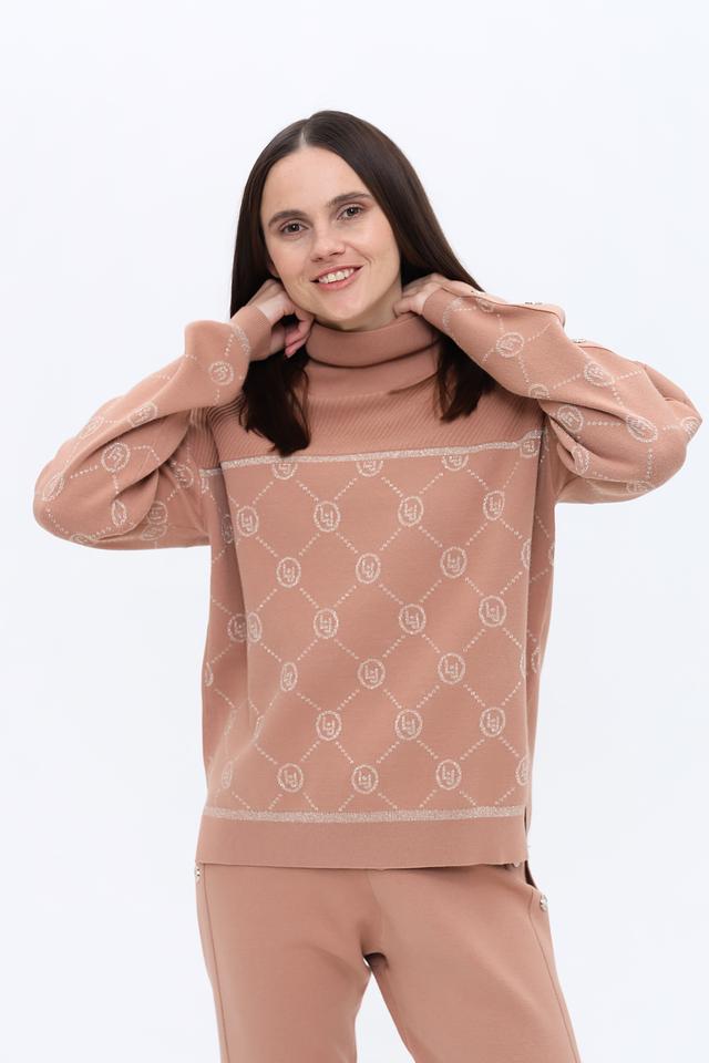 Женский джемпер Liu-Jo бежевого цвета с оригинальным узором в клетку и высоким горлом. Модель выполнена из мягкого трикотажа с добавлением вискозы, полиэстера и полиамида, что обеспечивает комфорт и удобство в носке. Состав: вискоза 53%, полиэстер 32%, полиамид 15%